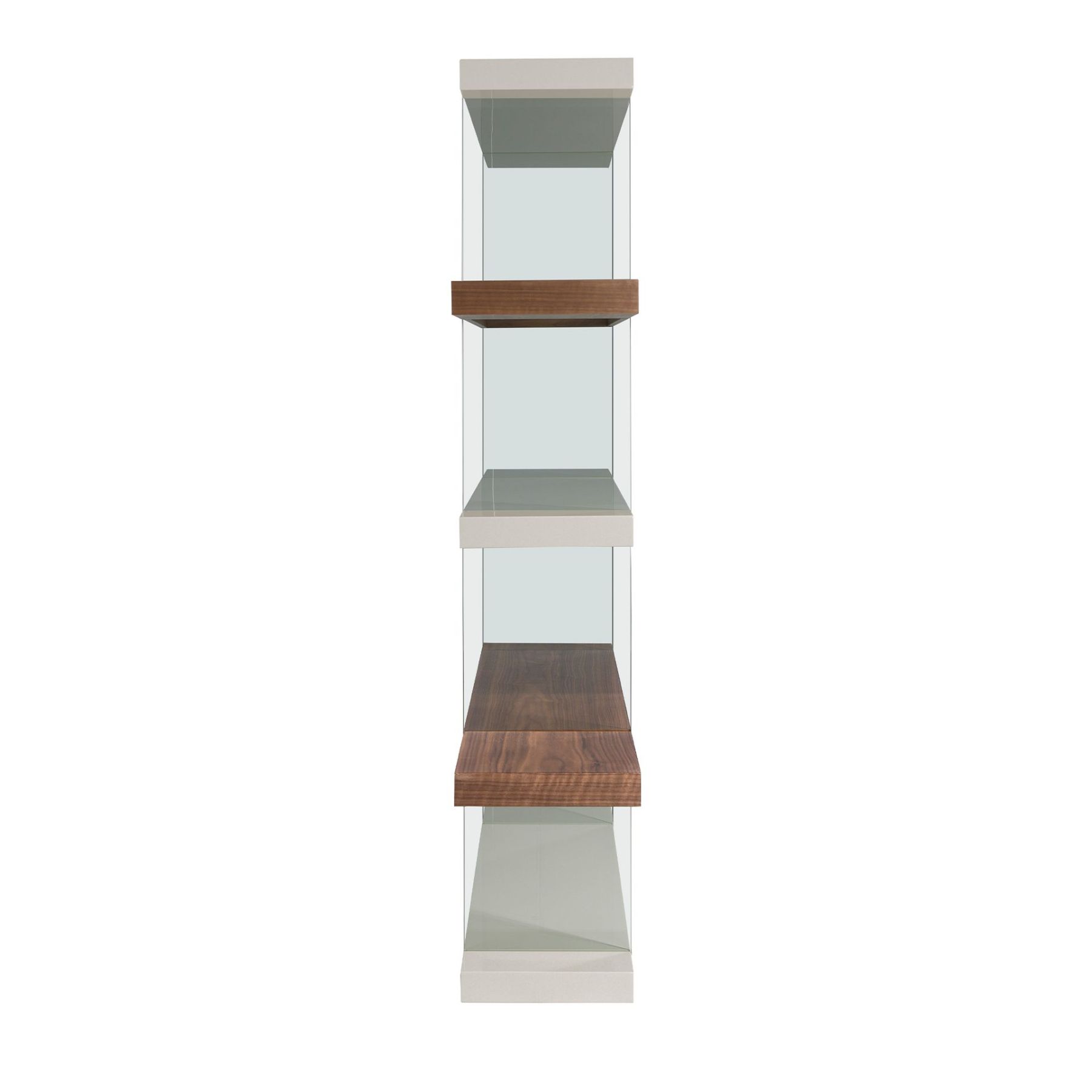 Стеллаж HS-SC-001 из одноименной коллекции от испанской фабрики Angel Cerda — грамотное решение для разделения пространства. Стеллаж моментально приковывает к себе внимание. Практически незаметный стеклянный каркас создает ощущение невесомости полок — они словно повисли в воздухе. Их массивный вид говорит о прочности, но при этом, он не утяжеляет конструкцию. Этот предмет мебели создан таким образом, что удачно встанет, как посреди комнаты (для разделения пространства), так и возле стены. Цветовая палитра универсальна и будет отлично гармонировать со всеми базовыми цветами, которые используются в европейском модерне (бежевый, белый, древесный и др.). Изделие полностью соответствует современному стилю испанской мебели — оно эргономичное, стильное, создано из качественных материалов. Конструкция одновременно простая и оригинальная. Пять полок, расположенных на расстоянии 38 см друг от друга, удерживают две вертикальные стенки из закаленного стекла. Они цельные и буквально врезаны в каждую панель. Нижняя полка заменяет опору (ножки), на которой стоит стеллаж. Полки расположены ассиметрично. Материал изготовления полок — ореховый шпон и мдф, окрашенный в белый глянцевый цвет. Размеры — 140 см × 33 см × 180 см (ширина, глубина, высота). Вес — 80 кг. Изделие поставляется в разобранном виде в двух коробках весом 35 и 45 кг соответственно. В комплект включен крепеж и инструкция по сборке.