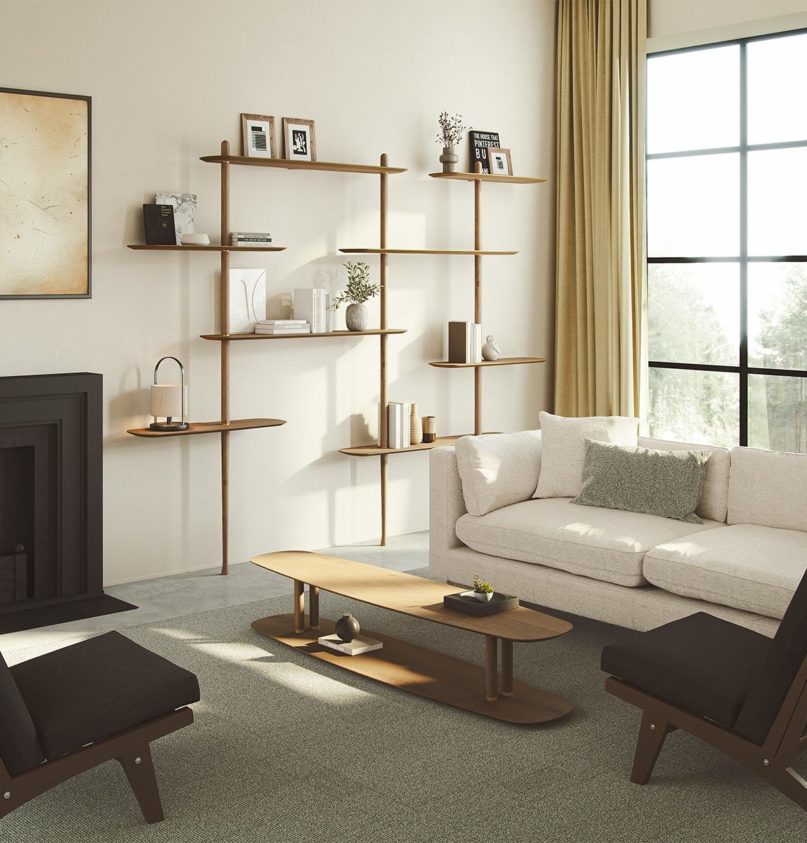 скульптурным внешним видом. Безупречный стеллаж, изготовленный из секций