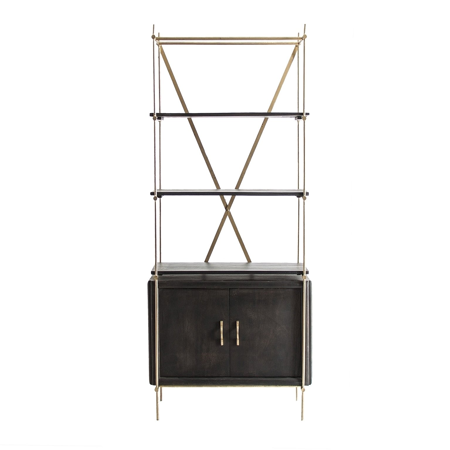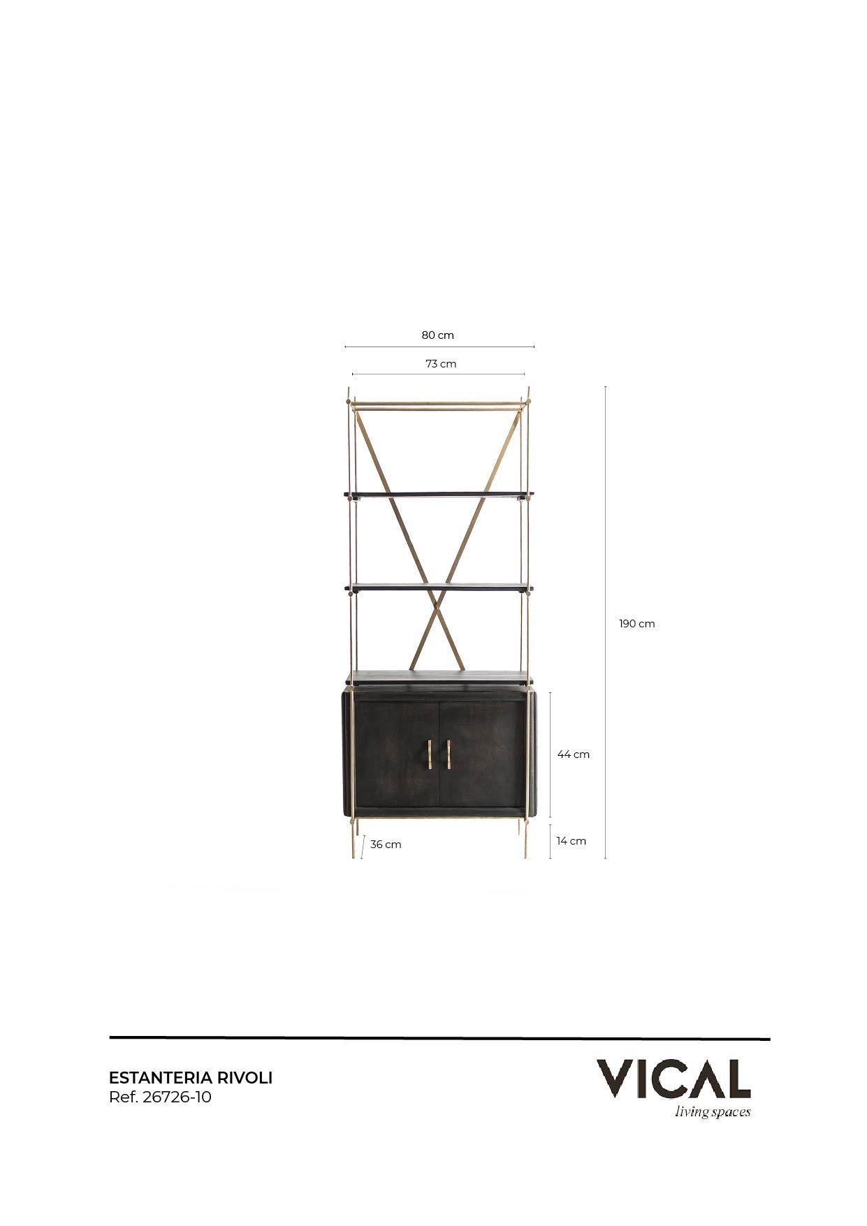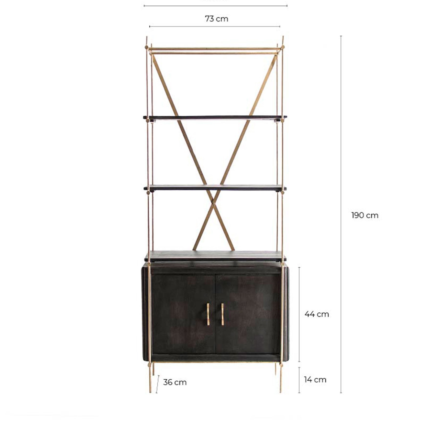 Откройте для себя полку Danta от VICAL home, дизайн которой сочетает в себе железо и детали из дерева вяза в коричневых и золотых тонах. Его размеры 72x36x190 см представляют собой идеальный предмет для хранения и демонстрации с оттенком элегантности. Металлический книжный шкаф со встроенным шкафом гарантирует функциональность и стиль в любом пространстве.