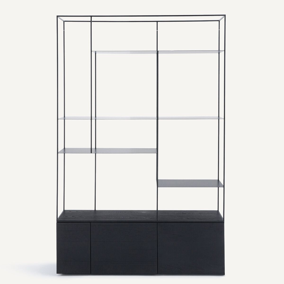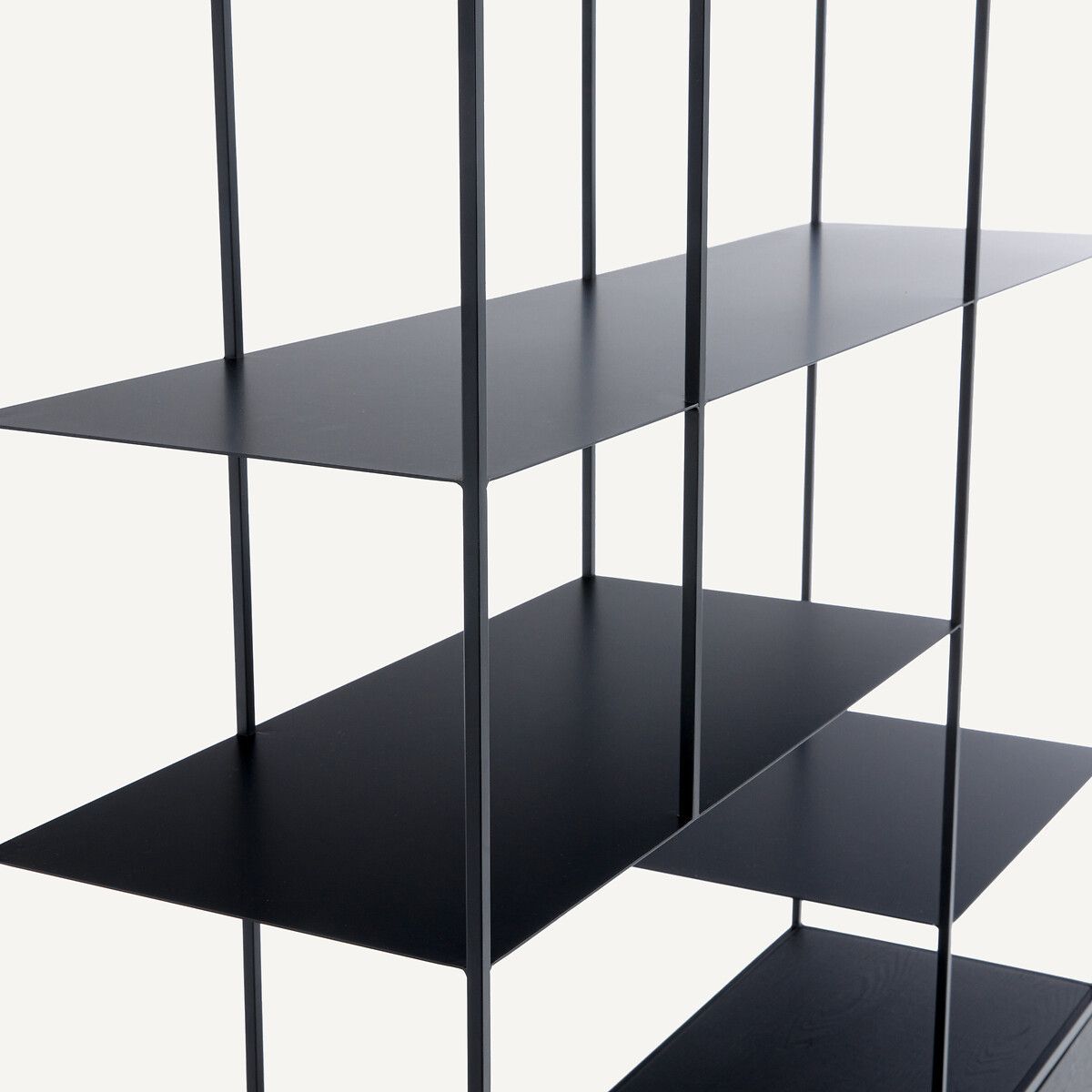 Проволочная конструкция толщиной в 1 см с четырьмя железными полками, покрытыми черной эпоксидной краской.