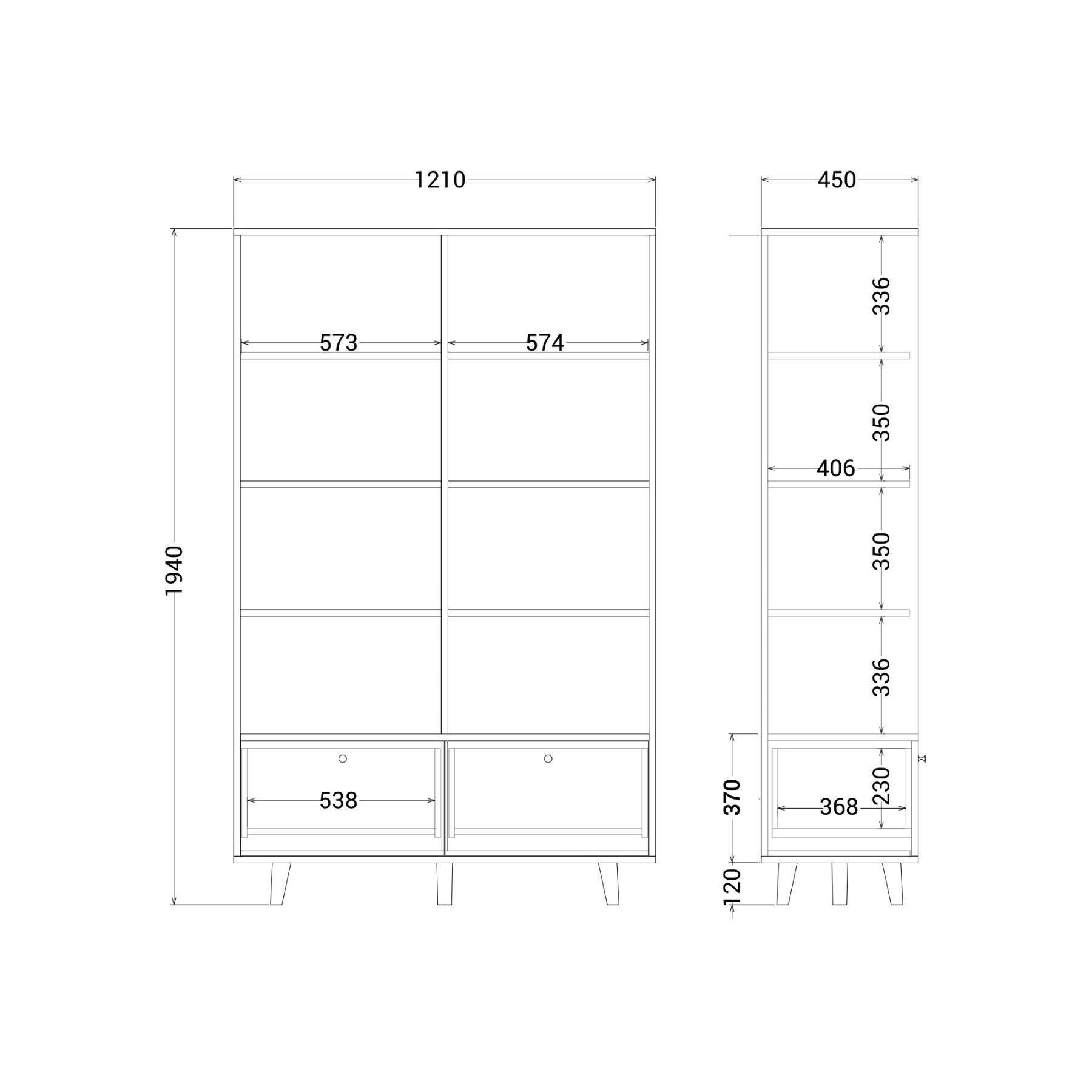 — Полки верхней секции из МДФ, покрыты натуральным шпоном дуба и выдерживают нагрузку до 30 кг;