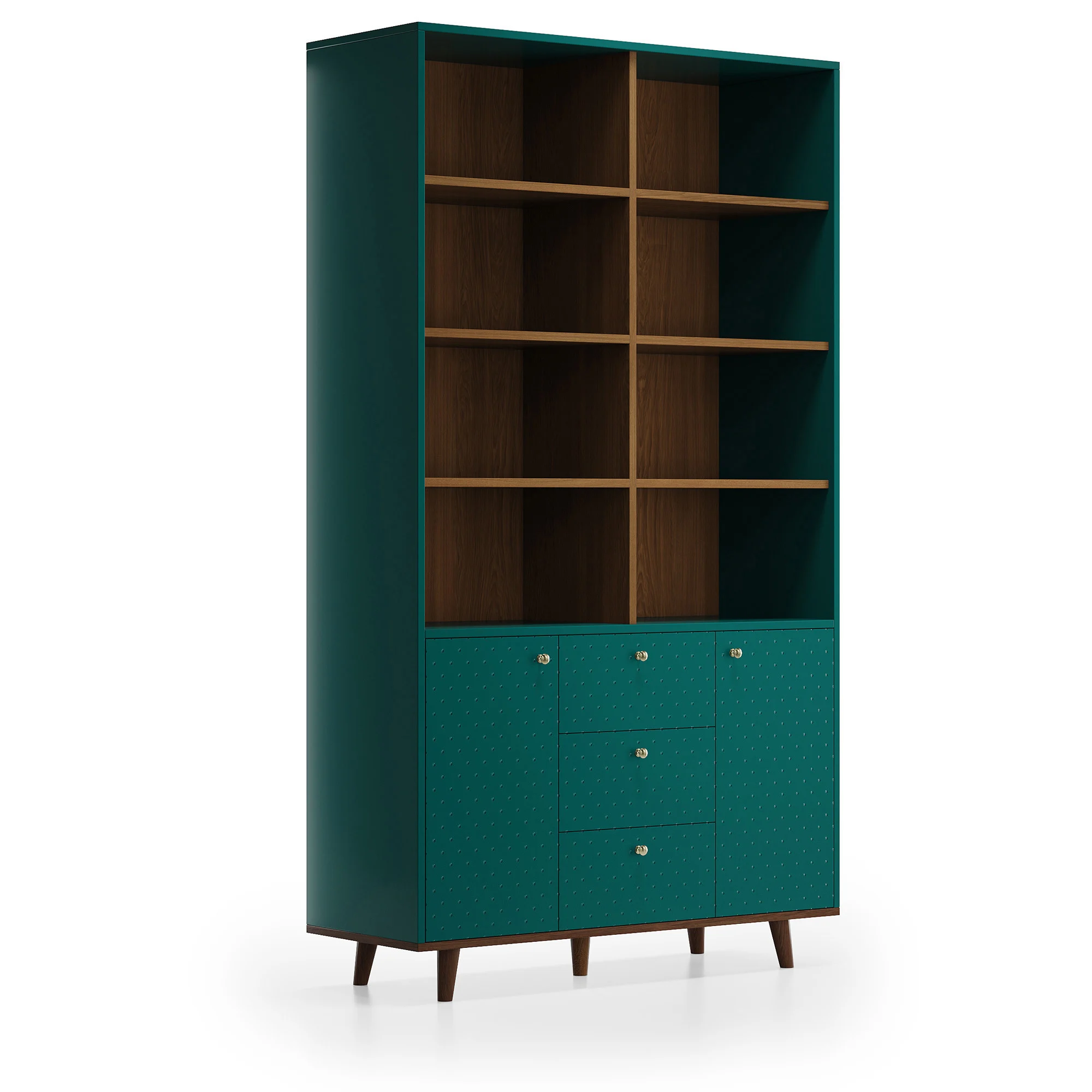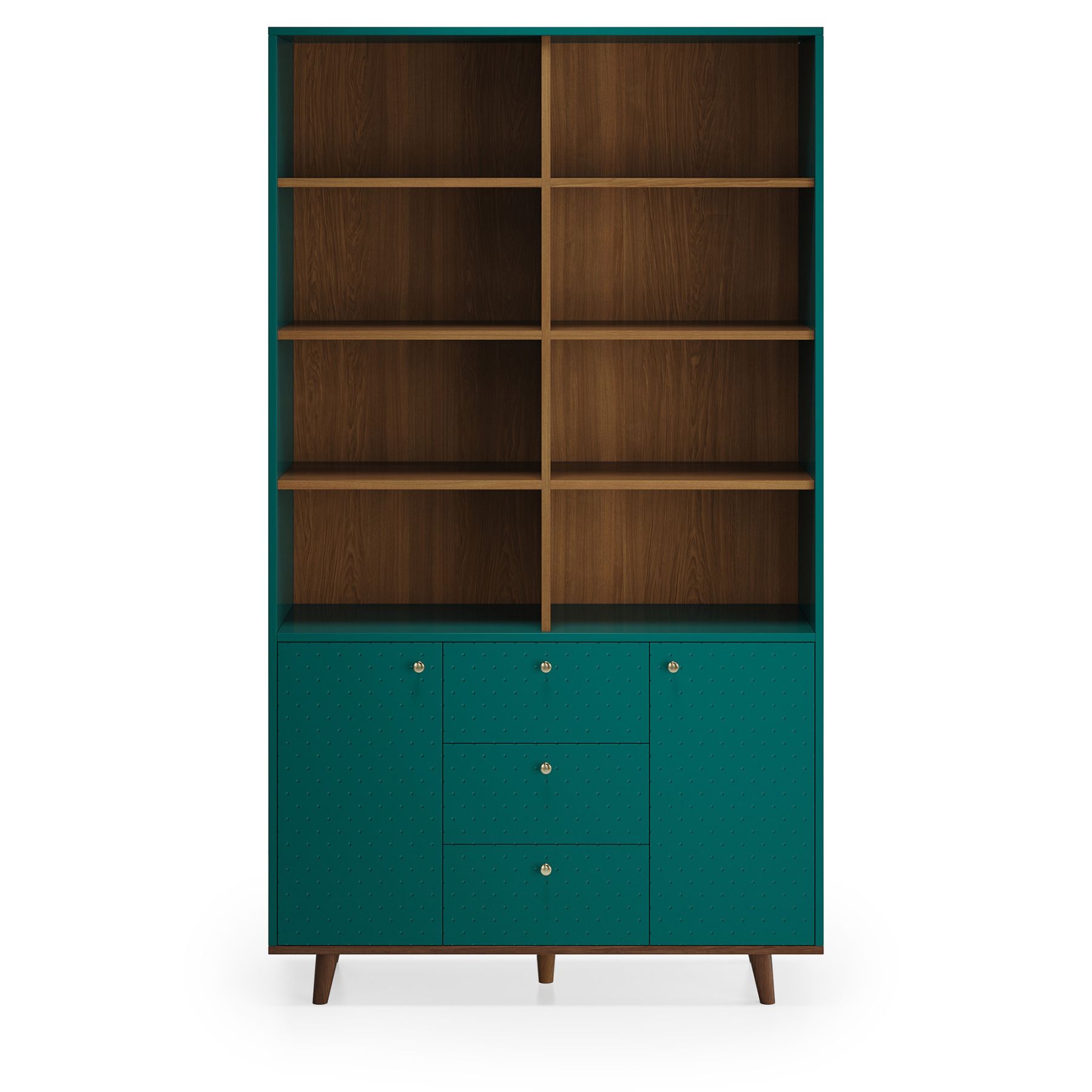 Стеллаж — удобное, практичное, стильное решение для тех, кто ценит качественный дизайн и комфорт. Основательная конструкция стеллажа не выглядит перегруженной благодаря изящным ножкам. Акцент на функциональности: стеллаж имеет восемь открытых полок в верхней секции, три ящика и два отделения с полками в нижней секции.