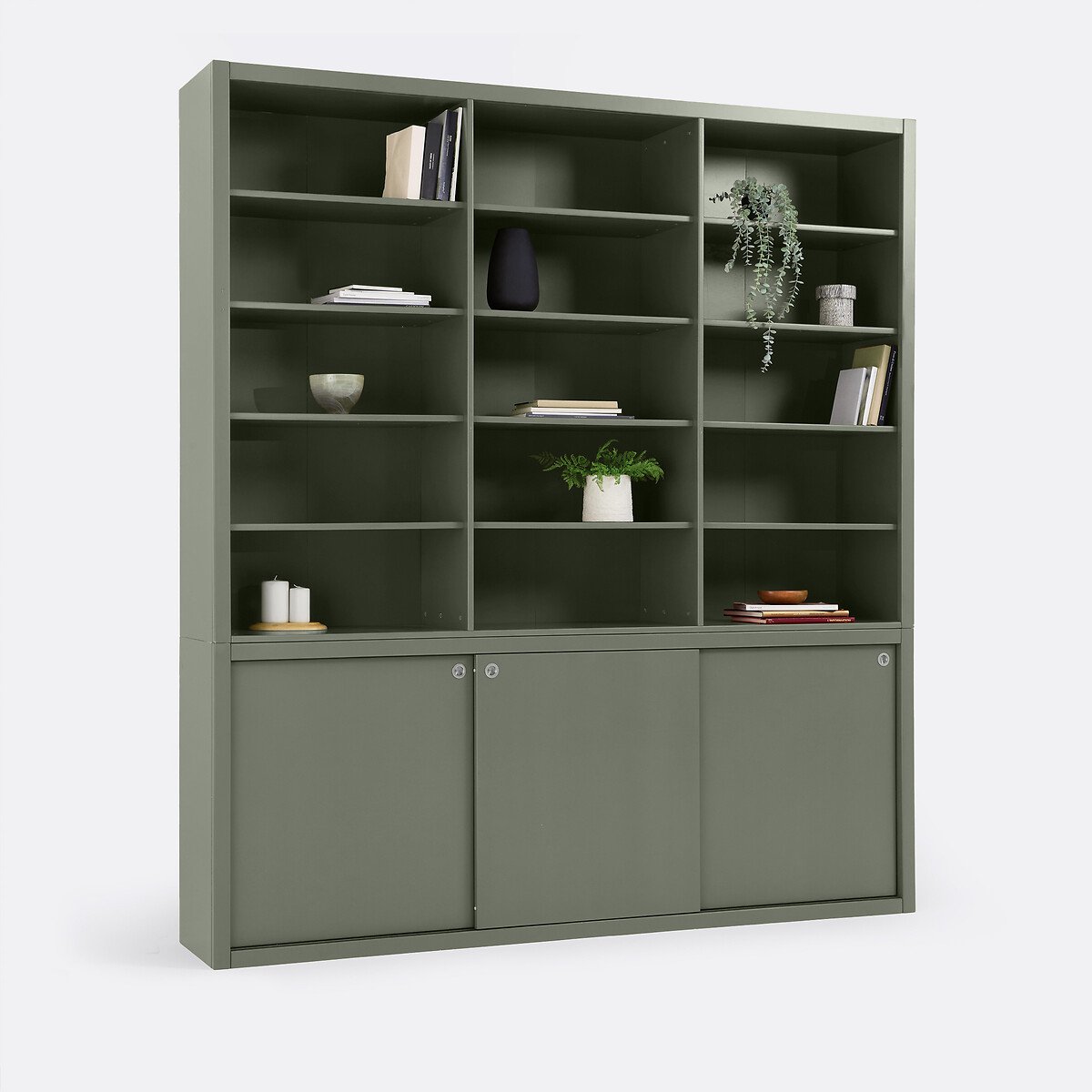 Стильная система хранения. Внушительные размеры книжного шкафа Alexandrie / Александри дают достаточно места, чтобы расположить на хранение или выставить на всеобщее обозрение декоративные мелочи или красивые книги: 15 открытых ниш и полки внизу за 3 раздвижными дверцами.Шкаф простой красивой формы может заполнить стену в гостиной, кухне открытой планировки или кабинете.Описание • Из матового крашеного МДФ с покрытием нитроцеллюлозным лаком • 15 открытых ниш • 2 фиксированные полки и 3 регулируемые по высоте в 3 положениях • 3 нижние раздвижные дверцы, закрывающие внутренние полки • Хромированные железные ручки • Количество человек, рекомендованное для сборки: дваРазмерыОбщие размеры • Ширина: 214 см • Высота: 237 см • Глубина: 40 см • Вес: 178 кгВнутренние размеры • Открытые ниши: Ш66 x В27 см • Самостоятельная сборка. • ДРЕВЕСИНА ИЗ УСТОЙЧИВО УПРАВЛЯЕМЫХ ЛЕСОВ. Наличие знака FSC® означает, что древесина, из которой изготовлено изделие, добыта с соблюдением международных стандартов: в процессе добычи не были нарушены права коренных народов, местных жителей и работников, и заготовка велась методом устойчивого лесопользования.Размеры и вес упаковки6 посылок • Ш96 x В22 x Д52 см, 30 кг • Ш92 x В17 x Д79 см, 33 кг • Ш223 x В12 x Д52 см, 38,5 кг • Ш80 x В29 x Д46 см, 35 кг • Ш163 x В13 x Д51 см, 38 кг • Ш222 x В13 x Д48 см, 36 кг
