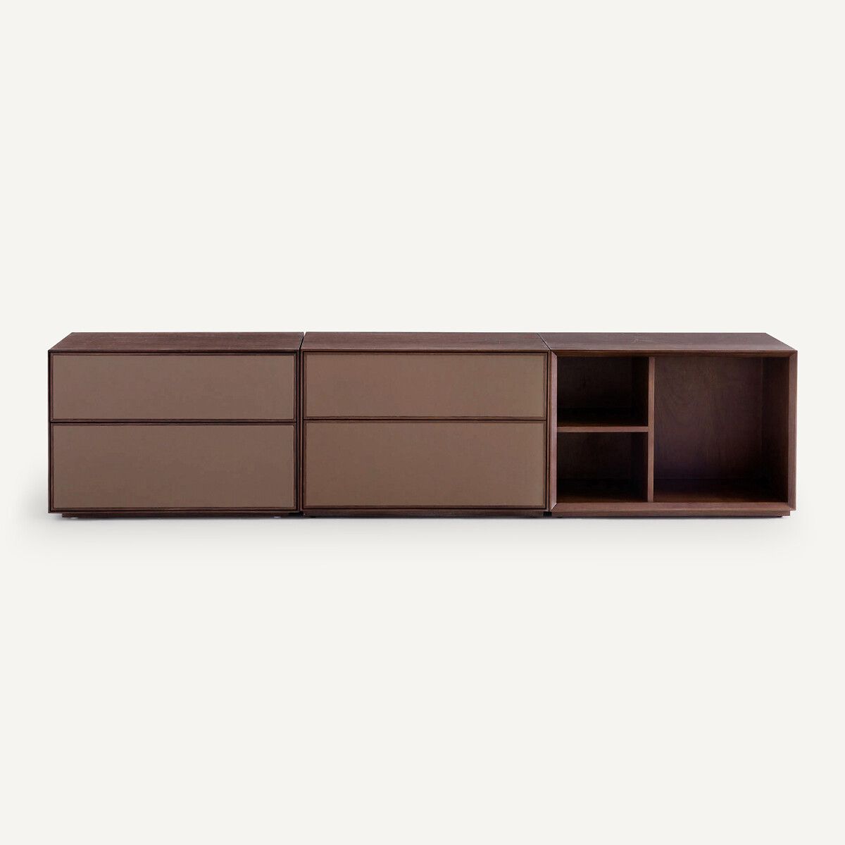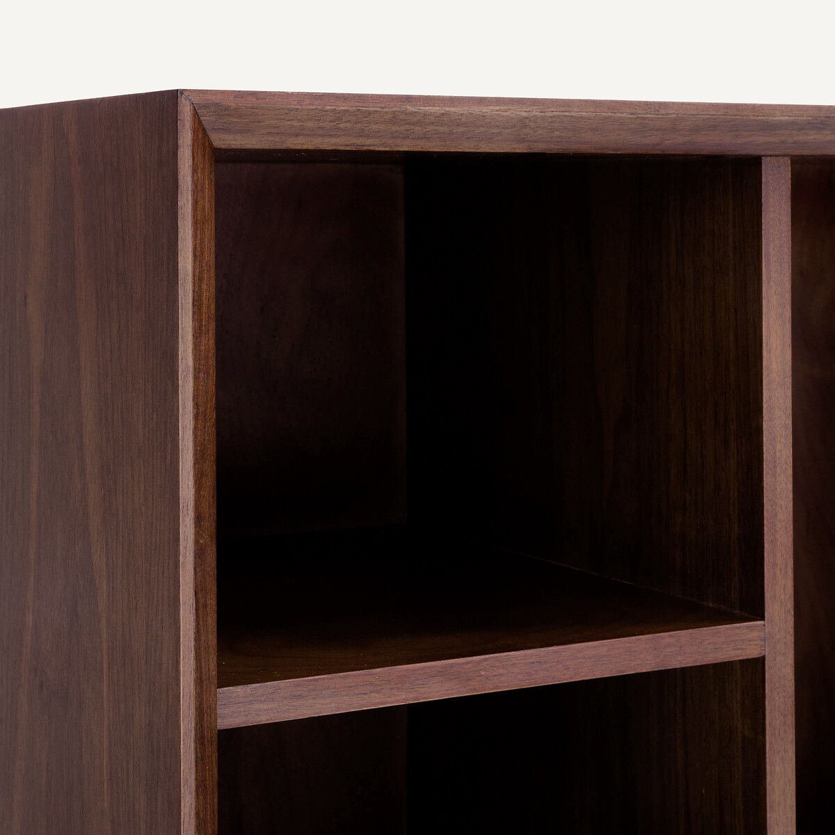 — Ящик, полки и основание из МДФ, облицованного ореховым шпоном FSC®, нитроцеллюлозное покрытие