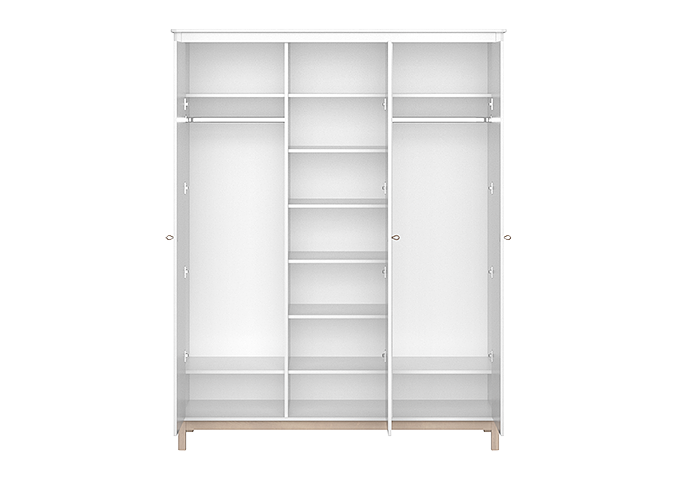 Каркас шкафа сделан из массива бука, что обеспечивает устойчивость и долговечность конструкции. Плоскости из МДФ.