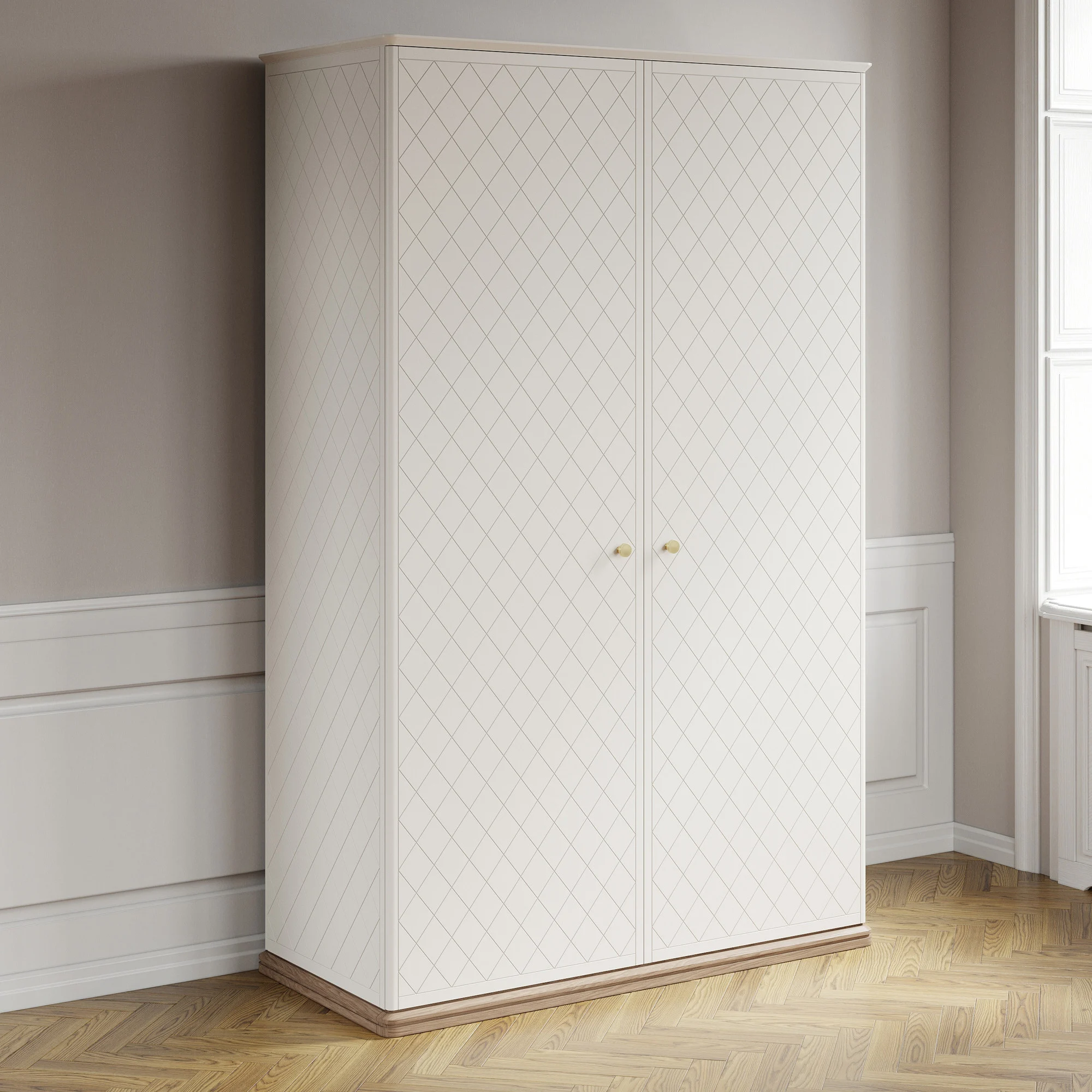 Шкаф из коллекции CRYSTAL представляет собой воплощение современной классики, вдохновленной ар—деко и северным модерном. В его дизайне угадываются черты обоих стилей: золотые элементы, плавные очертания и ненавязчивые геометрические орнаменты на эмалированных фасадах создают нео—классический образ без намека на китч.