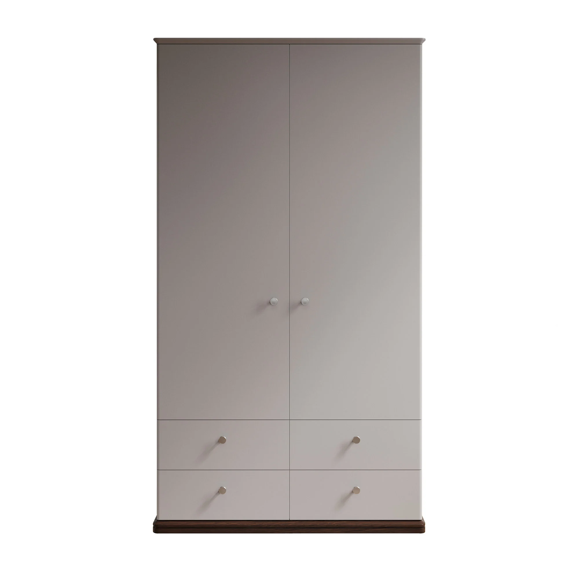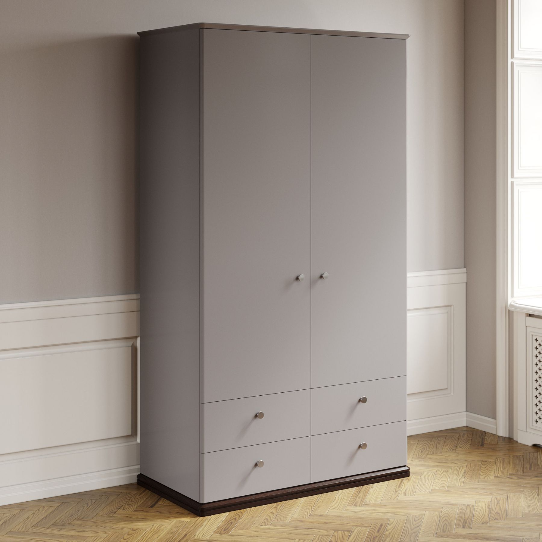 Оснащенный секциями со штангами для длинных вещей, нижними и верхними полками для хранения гардероба и аксессуаров, а также четырьмя выдвижными ящиками, этот шкаф обеспечивает максимальное удобство использования. Фасады украшены гравировкой и ручками в четырех видах отделки, что подчеркивает его элегантность и функциональность.