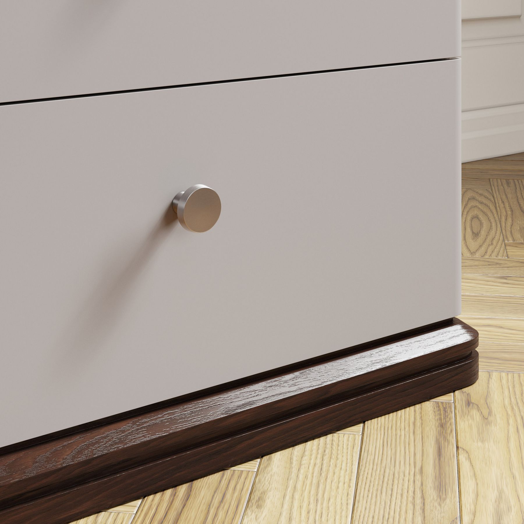 Тонированное основание из массива дуба и эмалированная крышка с многогранной ступенчатой фрезеровкой демонстрируют утонченную изысканность дизайна, который будет актуален вне времени. Благодаря продуманному наполнению и удобным габаритам, шкаф гармонично использует пространство и станет украшением интерьера спальни или прихожей.
