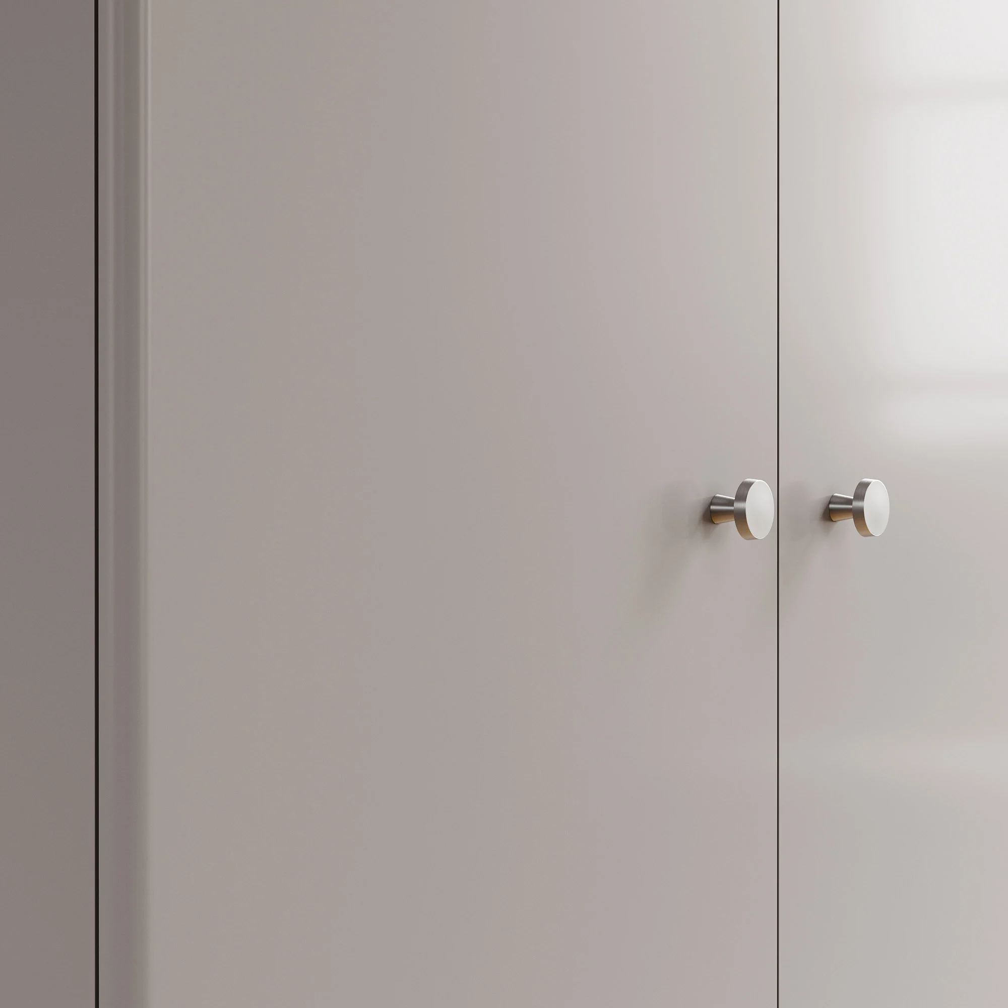 — Металлические ручки—кнопки: Доступны в четырех отделках: шлифованное золото, черный матовый, шлифованная сталь, графит.