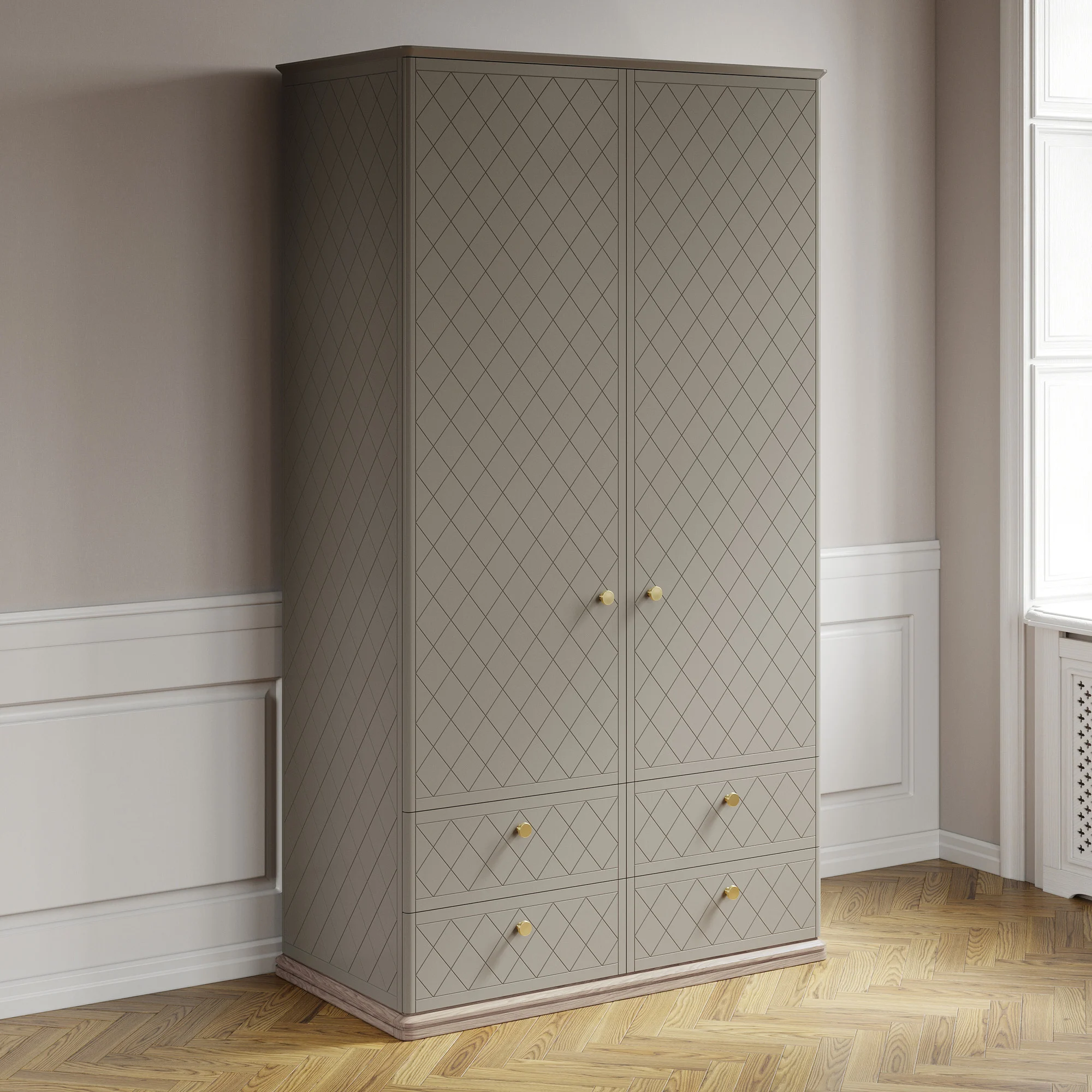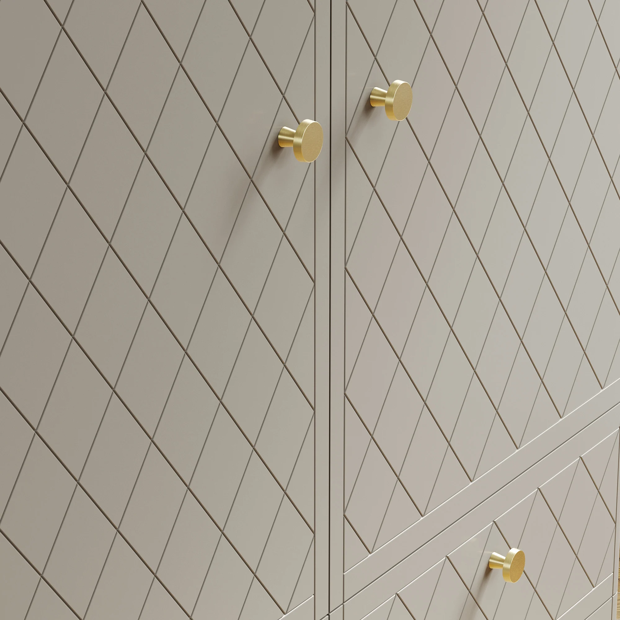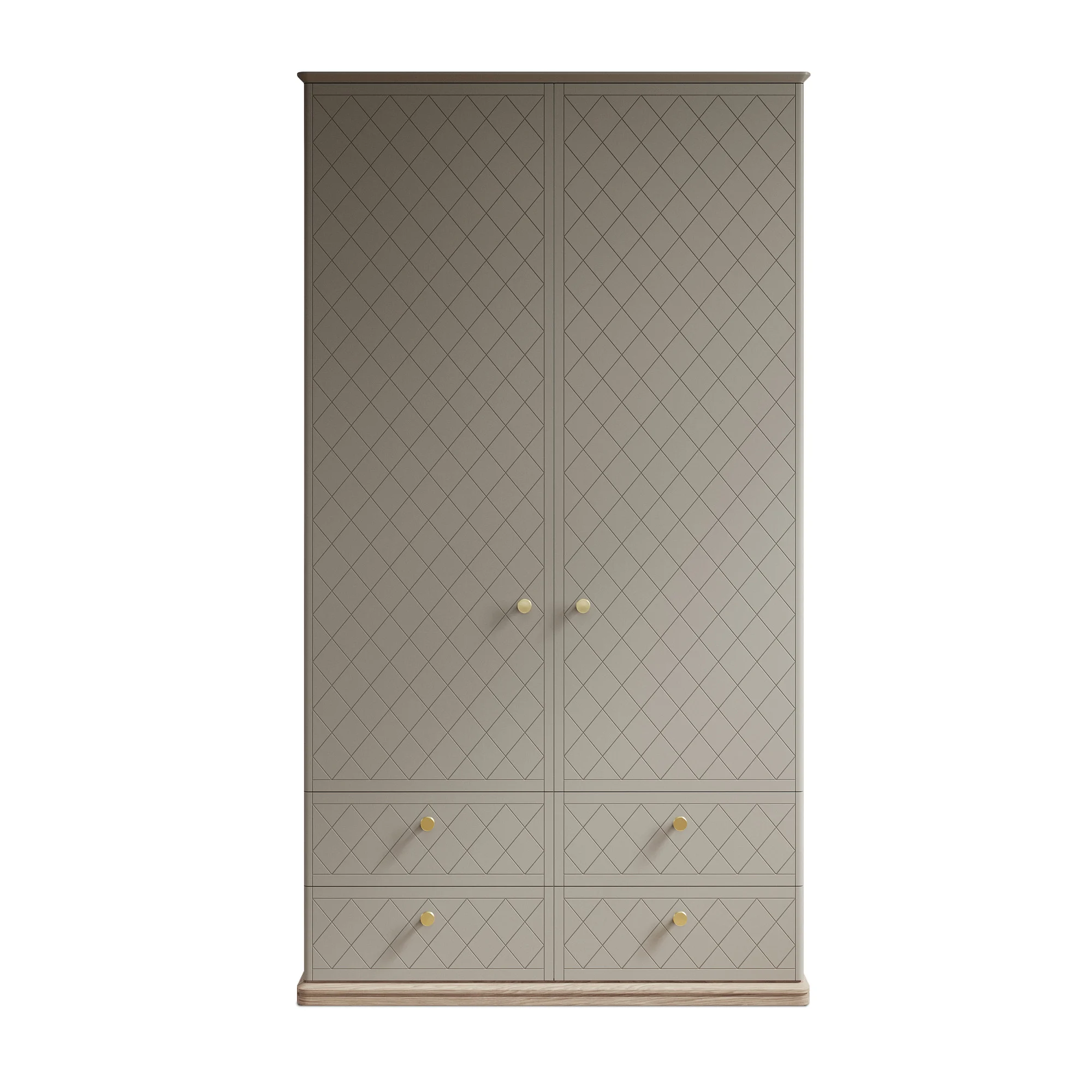 Шкаф из коллекции CRYSTAL сочетает в себе черты ар—деко и северного модерна, создавая современную классику. Его золотые элементы, плавные очертания и ненавязчивые геометрические орнаменты на эмалированных фасадах подчеркивают нео—классический стиль без намека на китч.