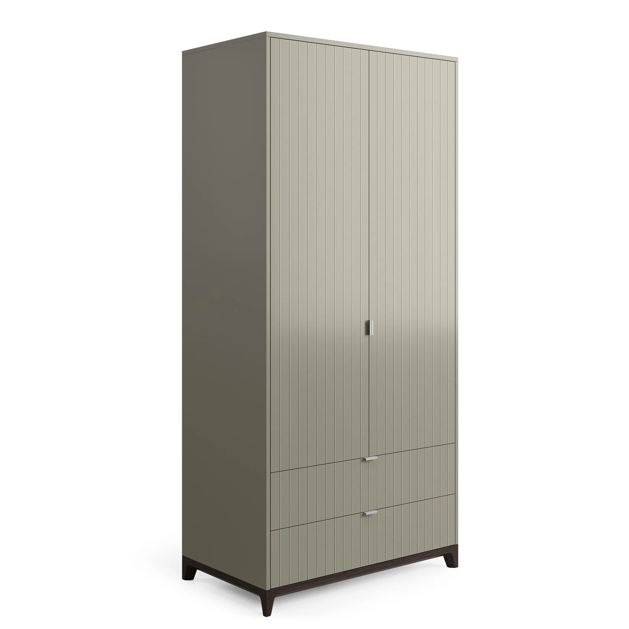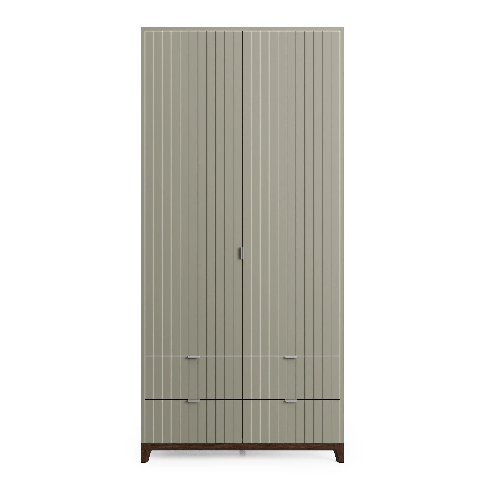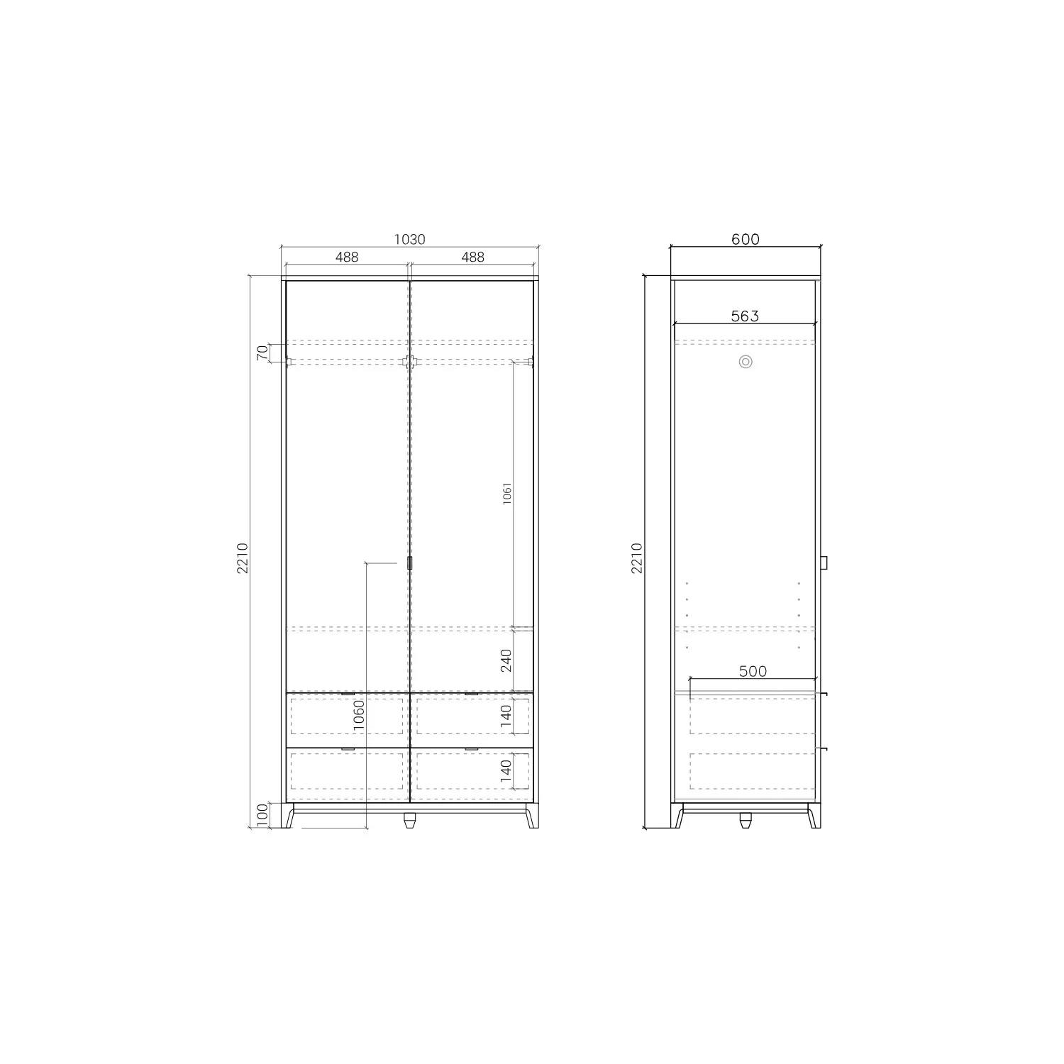 Компактный шкаф позволит комфортно и аккуратно разложить, а также развесить все ваши вещи. Конструкция шкафа предусматривает две секции со штангами и полками, а также четыре вместительных ящика.