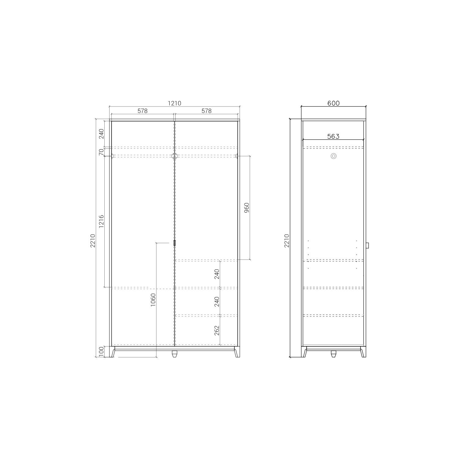 Вместительный и функциональный шкаф CASE сочетает в себе продуманную конструкцию и современный дизайн. Шкаф разделен на две вместительные секции. В каждом отделении расположены полки и штанги для вешалок. Благодаря легкой конструкции и сбалансированной форме шкаф не выглядит массивным, а фасады с объемной гравировкой дополняют его стильный дизайн.