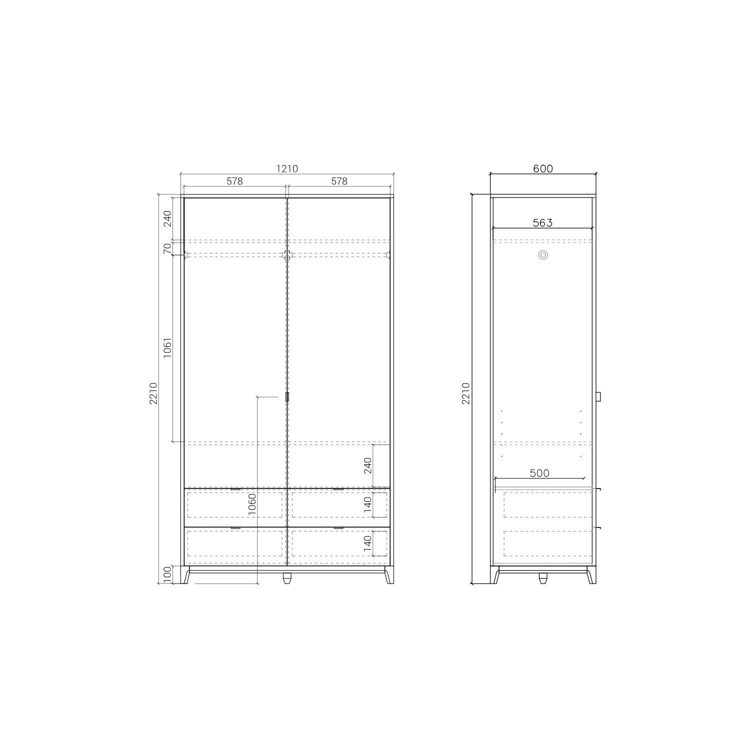 Основание и ножки выполнены из массива дуба, цвет которого вы можете выбрать из 7 вариантов. Корпус шкафа может быть покрыт эмалью или натуральным шпоном дуба. Фасады могут быть покрыты эмалью с / без гравировки или натуральным шпоном дуба.