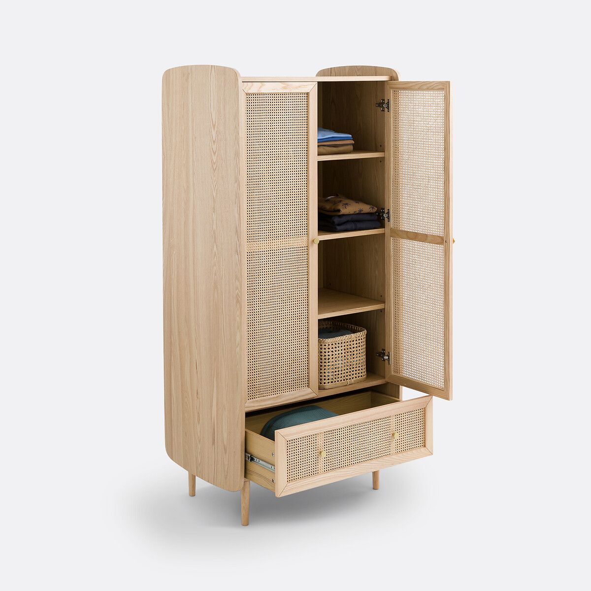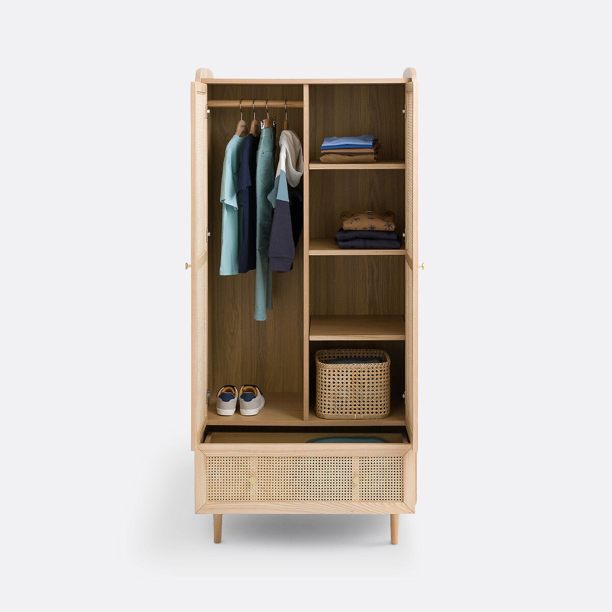 Шкаф Tempa с перекладиной слева, отделением для белья справа и ящиком с большим пространством для вещей с шармом в ретро-стиле. Он будет отлично сочетаться с другой мебелью из коллекции.