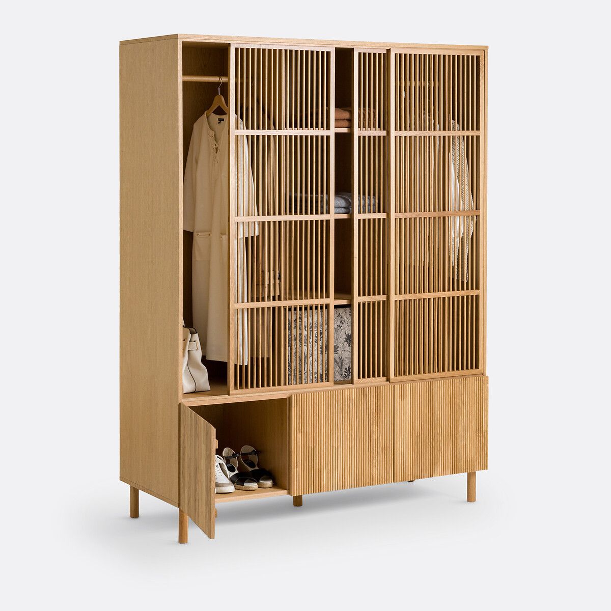 — 1 перекладина для вешалок с каждой стороны &43; 3 полки по центру с 4 нишами