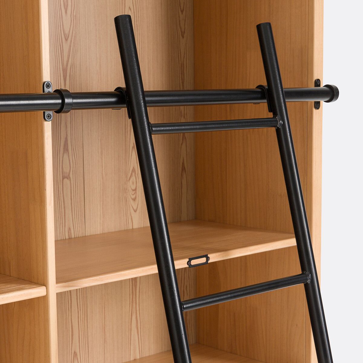 — Съемная лестница из железа с черным зернистым покрытием: Лестница добавляет удобства при использовании верхних полок.