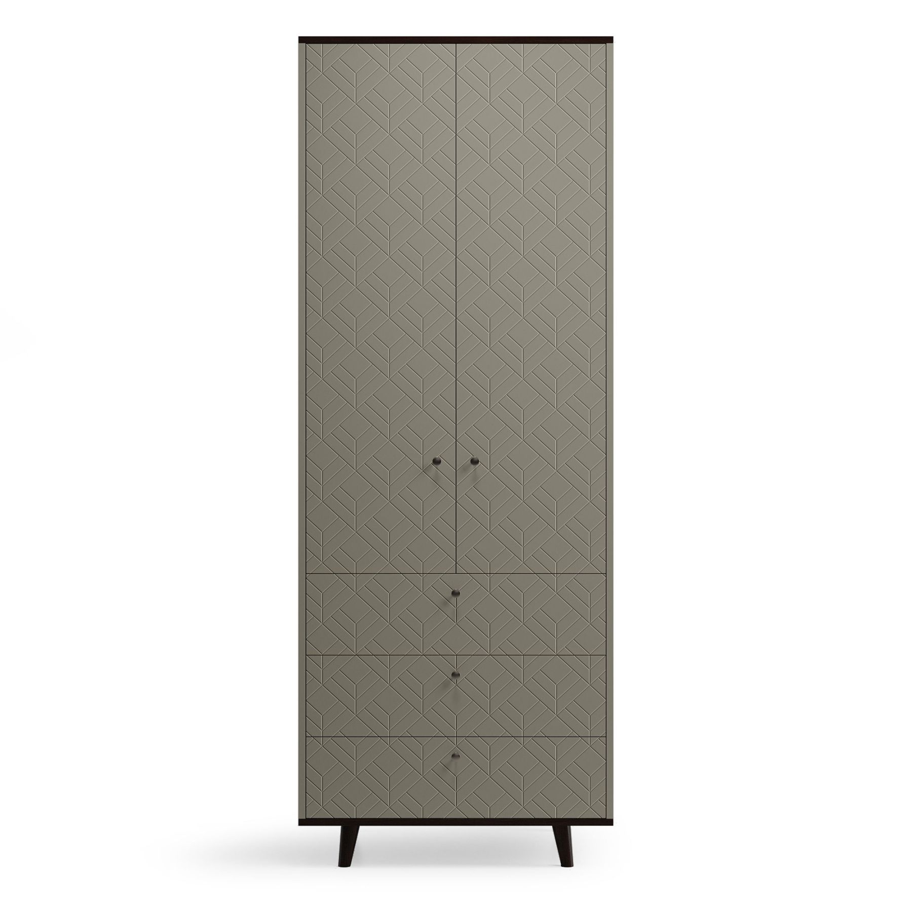Верх и основание шкафа TWIN облицованы натуральным шпоном дуба, а ножки выполнены из массива дуба. Авторский узор гравировки на фасадах изделия выгодно подчёркивает его уникальность.