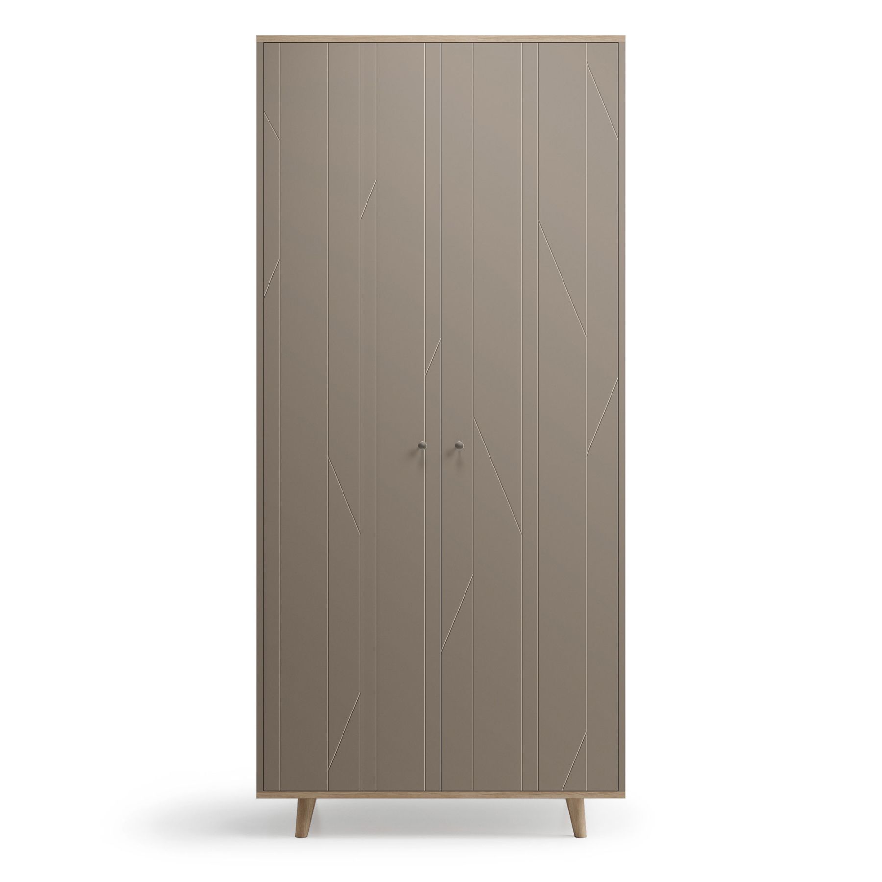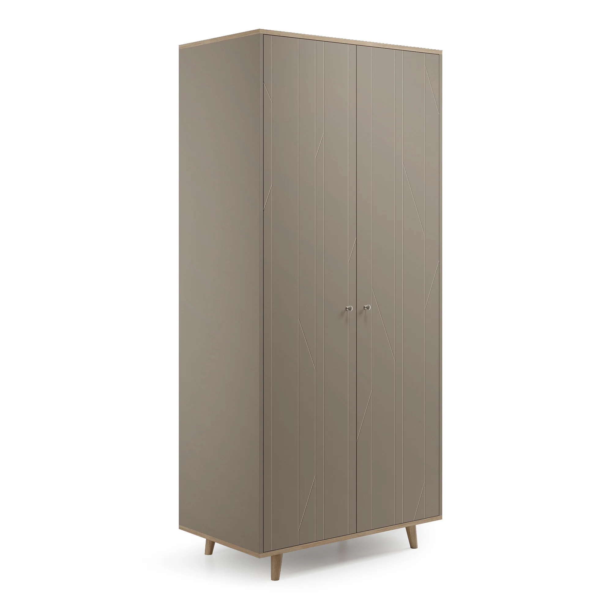Верх и основание шкафа TWIN облицованы натуральным шпоном дуба, а ножки выполнены из массива дуба. Концептуальный узор гравировки на фасадах изделия выгодно подчеркивает его лаконичный дизайн.