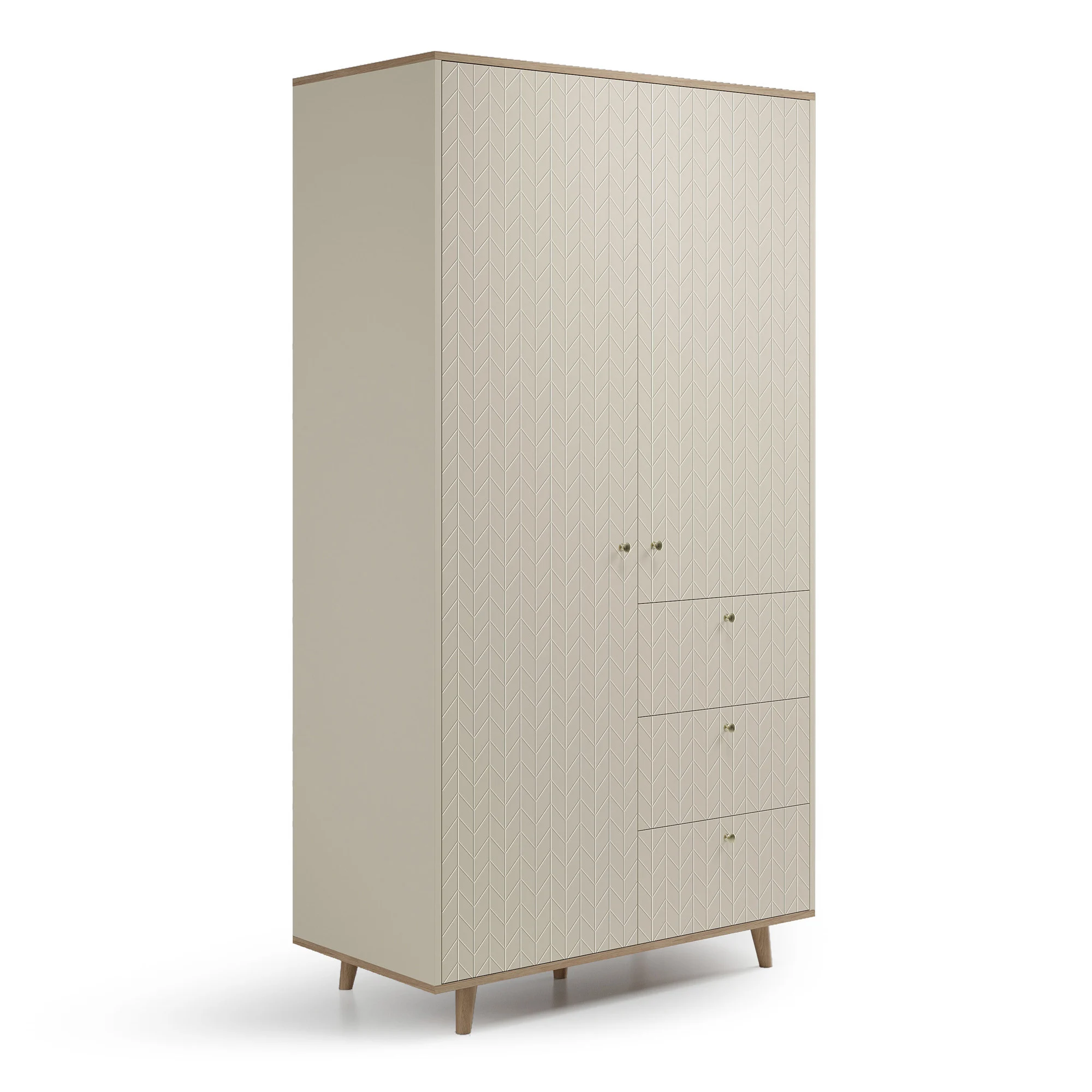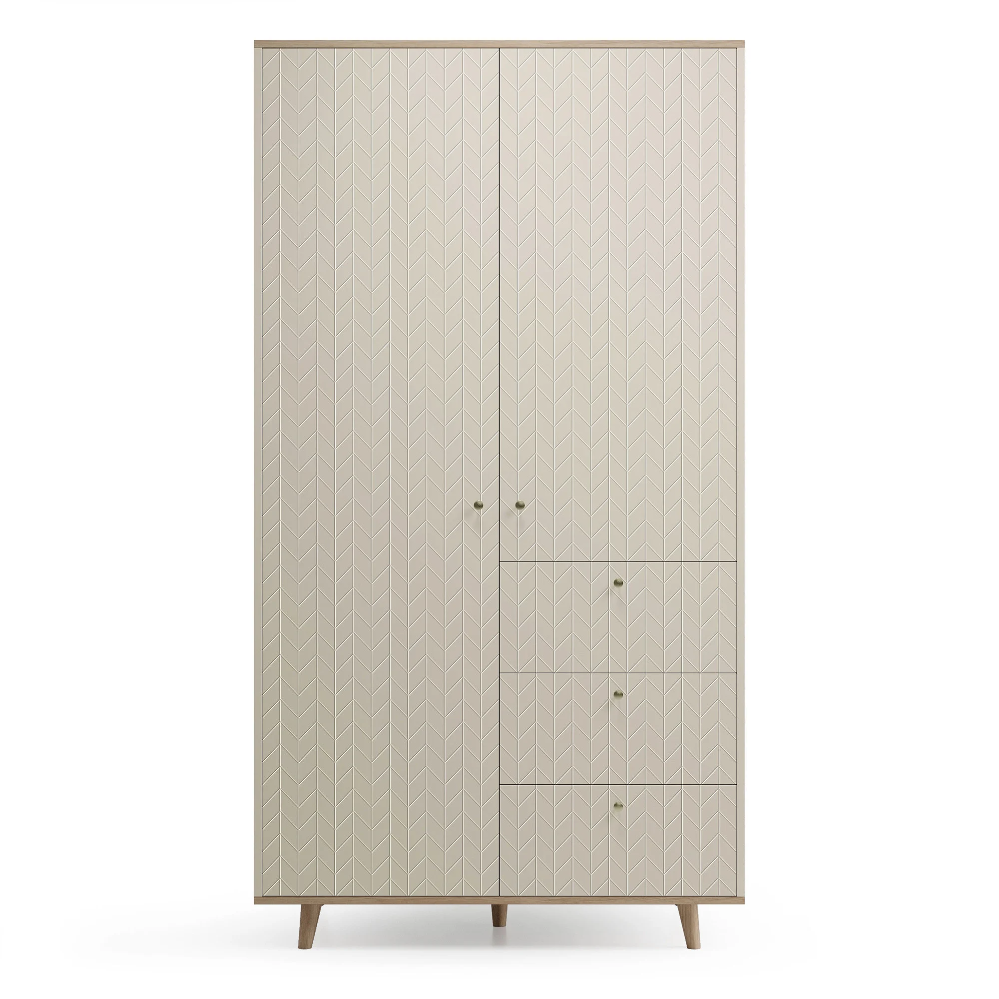 Верх и основание шкафа TWIN облицованы натуральным шпоном дуба, а ножки выполнены из массива дуба. Фасады с гравировкой и изысканная палитра эмали завершают элегантный стиль изделия.