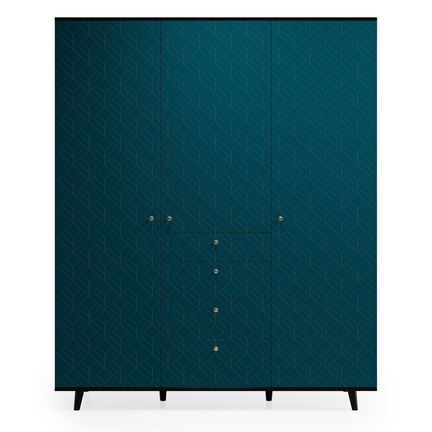 Один из самых вместительных шкафов в коллекции TWIN. Конструкция шкафа предусматривает две секции со штангами и полками, а также одну секцию по середине, которая состоит из полок, скрытых за фасадом, и ящиков. Кроме того, предусмотрены отверстия для регулировки высоты полок и штанг.