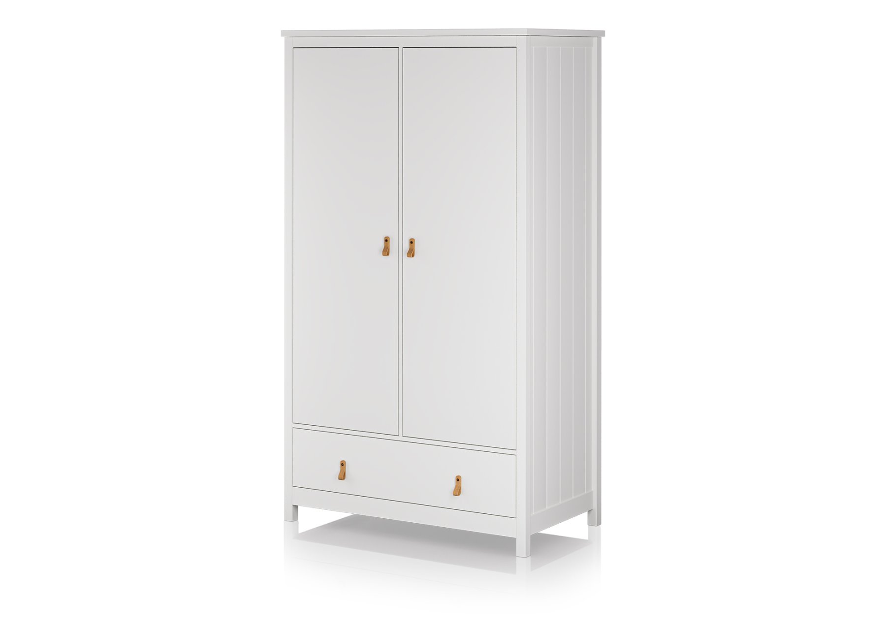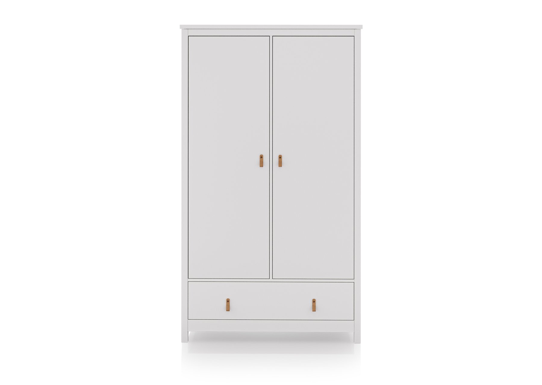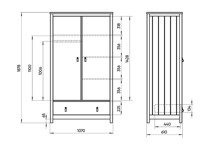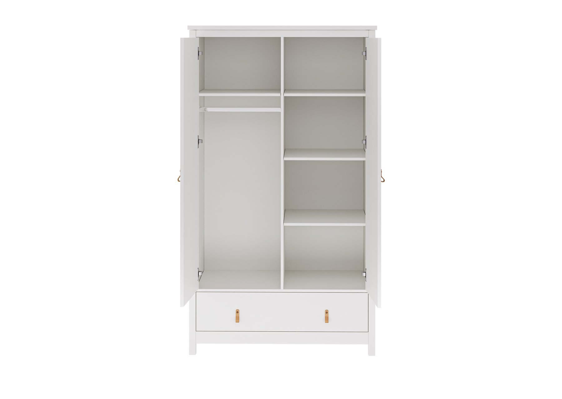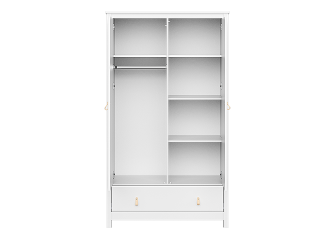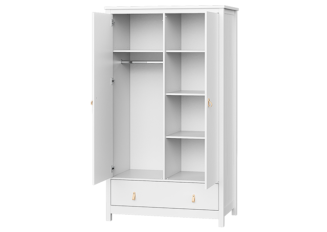 Каркас шкафа сделан из массива бука, что обеспечивает устойчивость и долговечность конструкции. Плоскости из МДФ.
