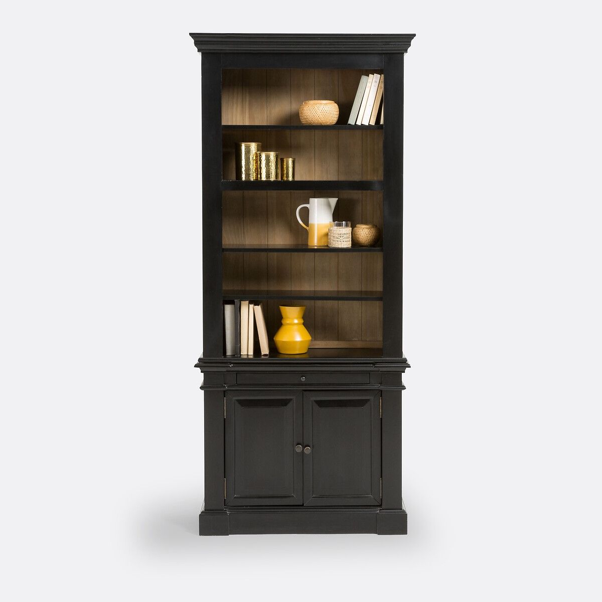 — Каркас и фасад из массива сосны черного цвета с отделкой блестящим нитролаком