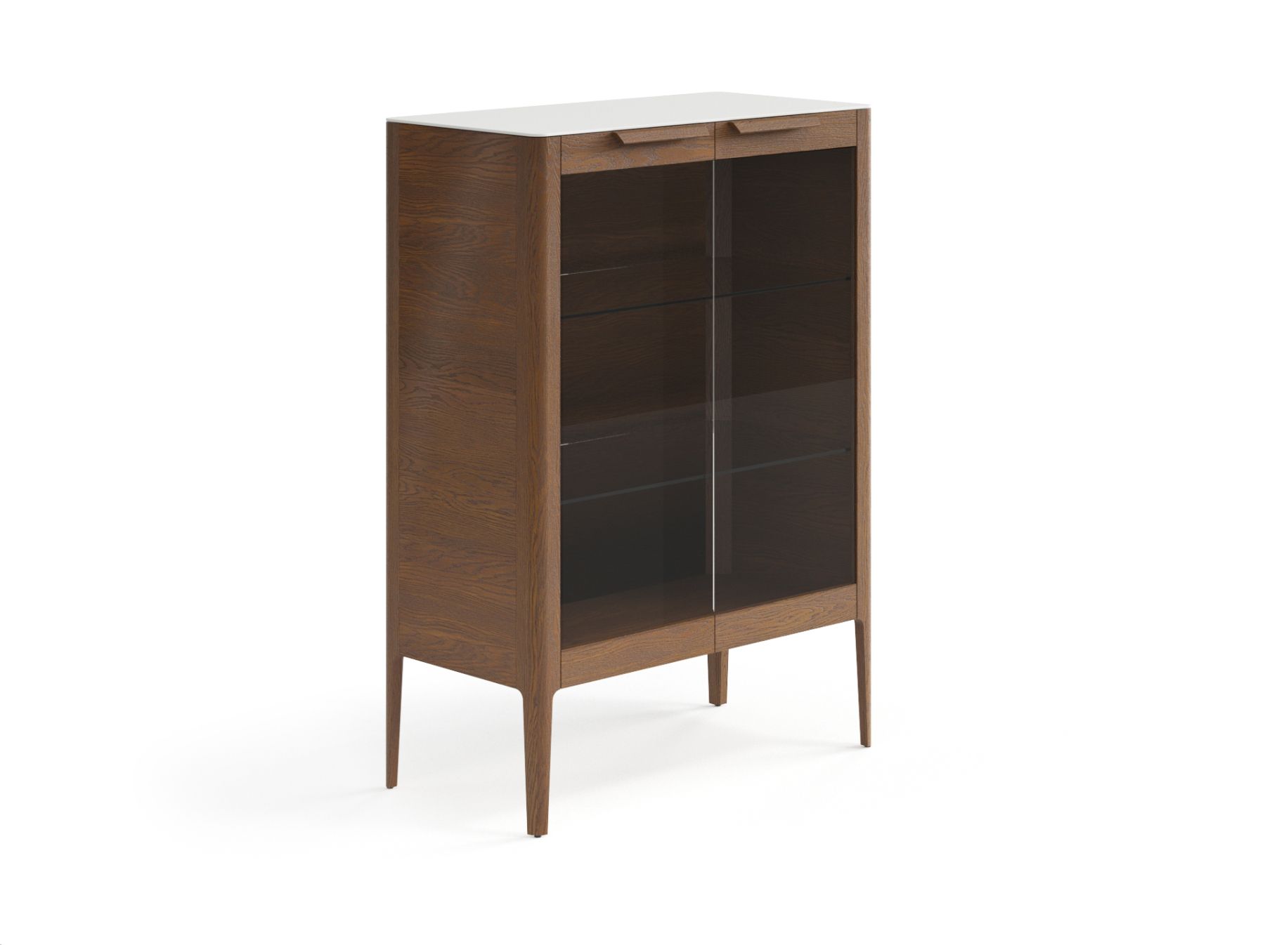 Изысканная витрина украсит интерьер дома и подчеркнёт вашу индивидуальность. Распашные фасады с гладкими серыми стёклами — главная особенность этого изделия, которая делает его уникальным. Две полки из калёного прозрачного стекла выдерживают сильные нагрузки, что позволит разместить внутри витрины книги, посуду или другие предметы декора.