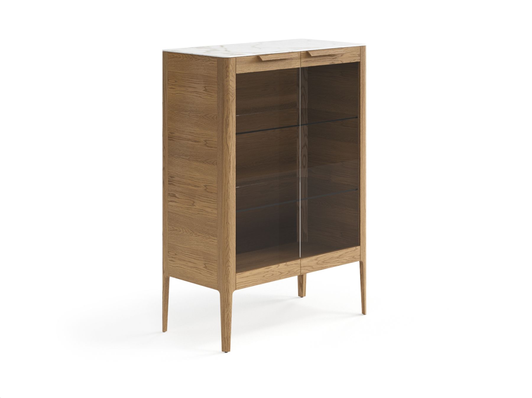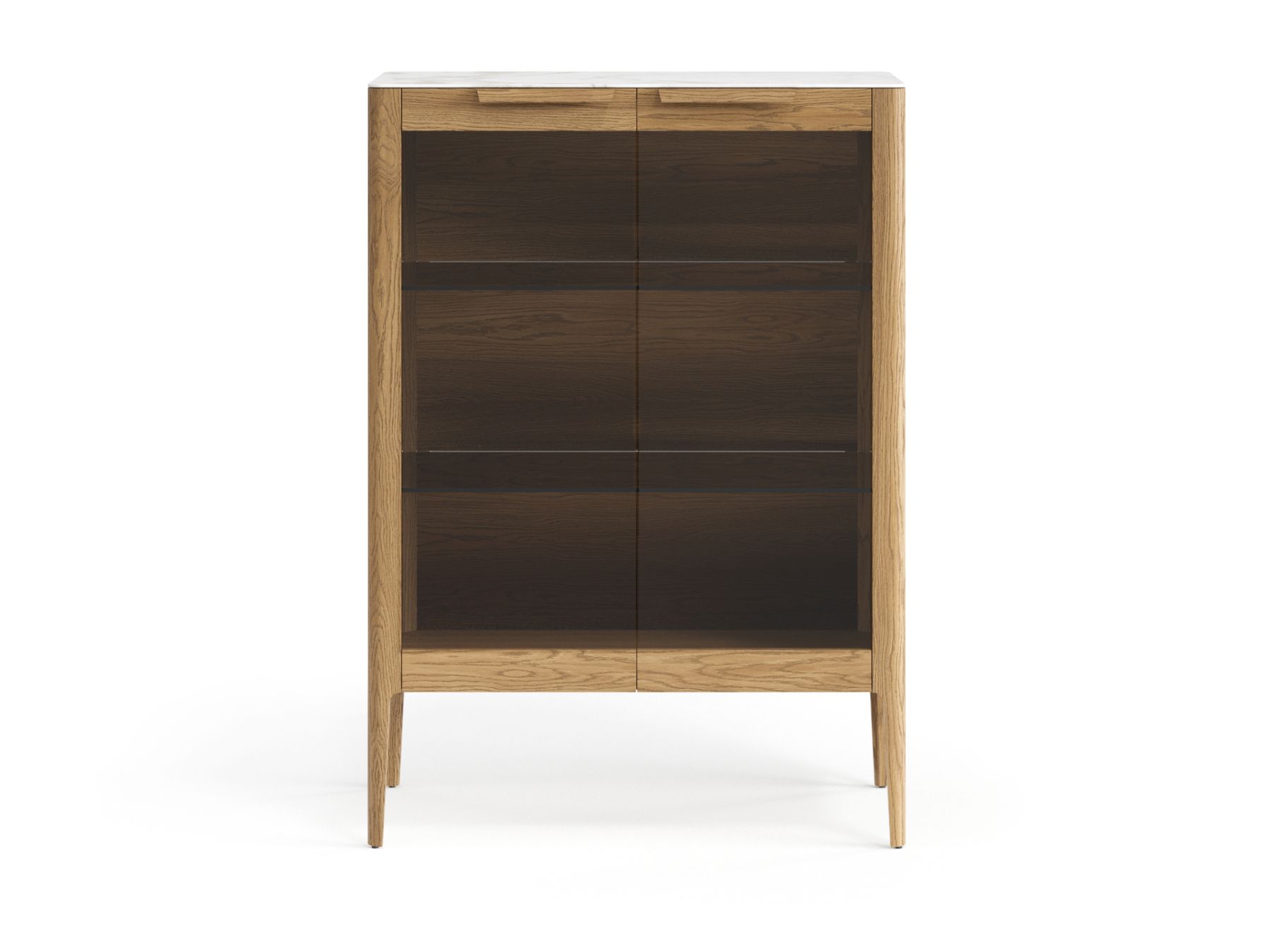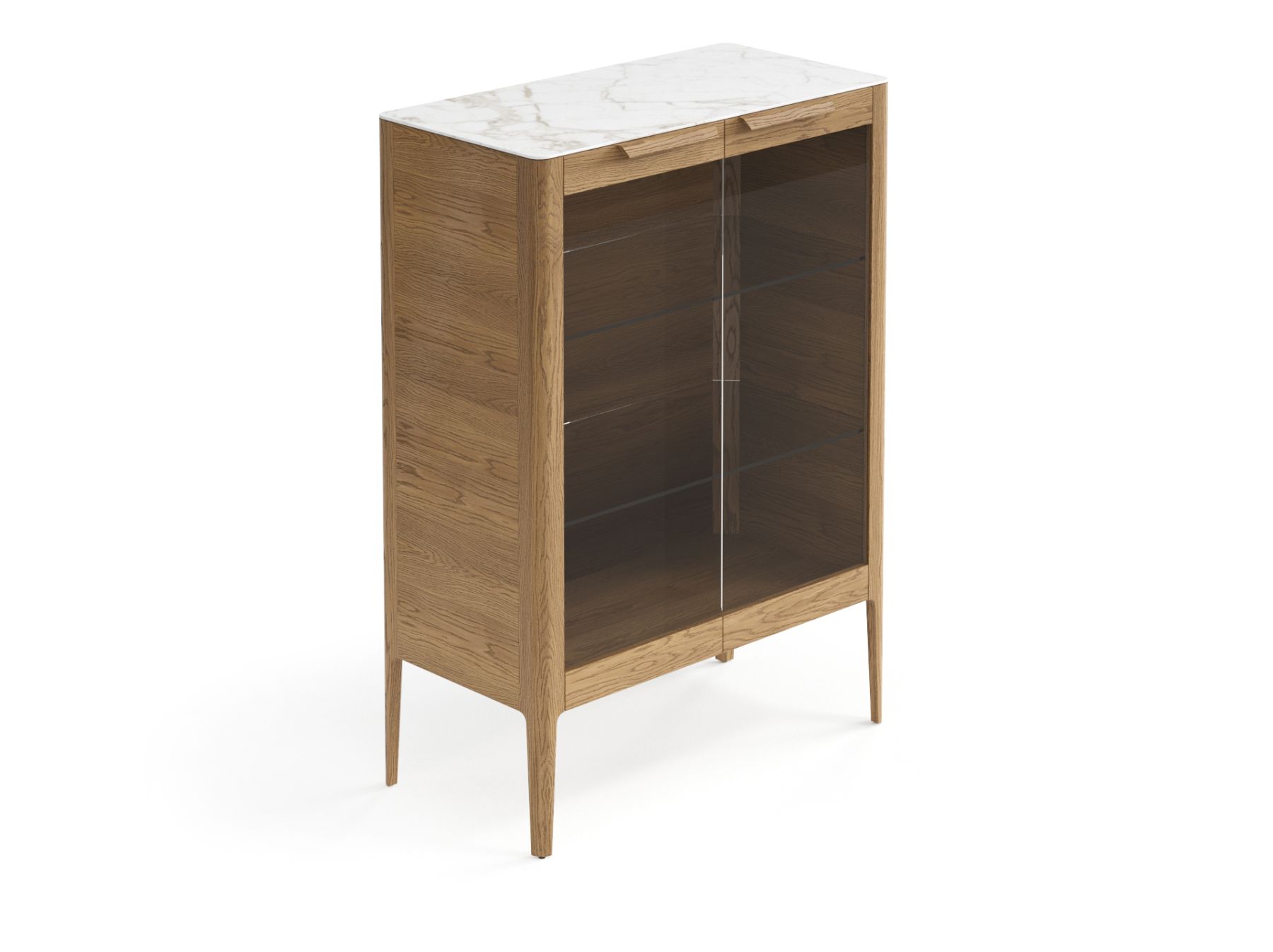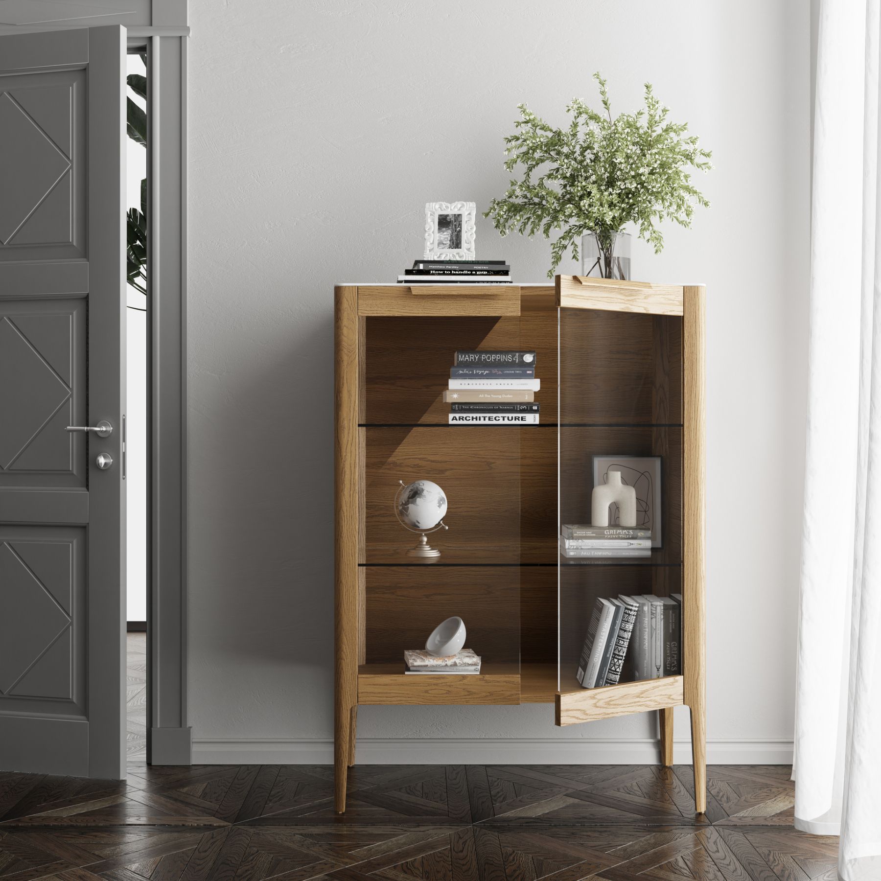 Изысканная витрина украсит интерьер дома и подчеркнёт вашу индивидуальность. Распашные фасады с гладкими серыми стёклами — главная особенность этого изделия, которая делает его уникальным. Две полки из калёного прозрачного стекла выдерживают сильные нагрузки, что позволит разместить внутри витрины книги, посуду или другие предметы декора.