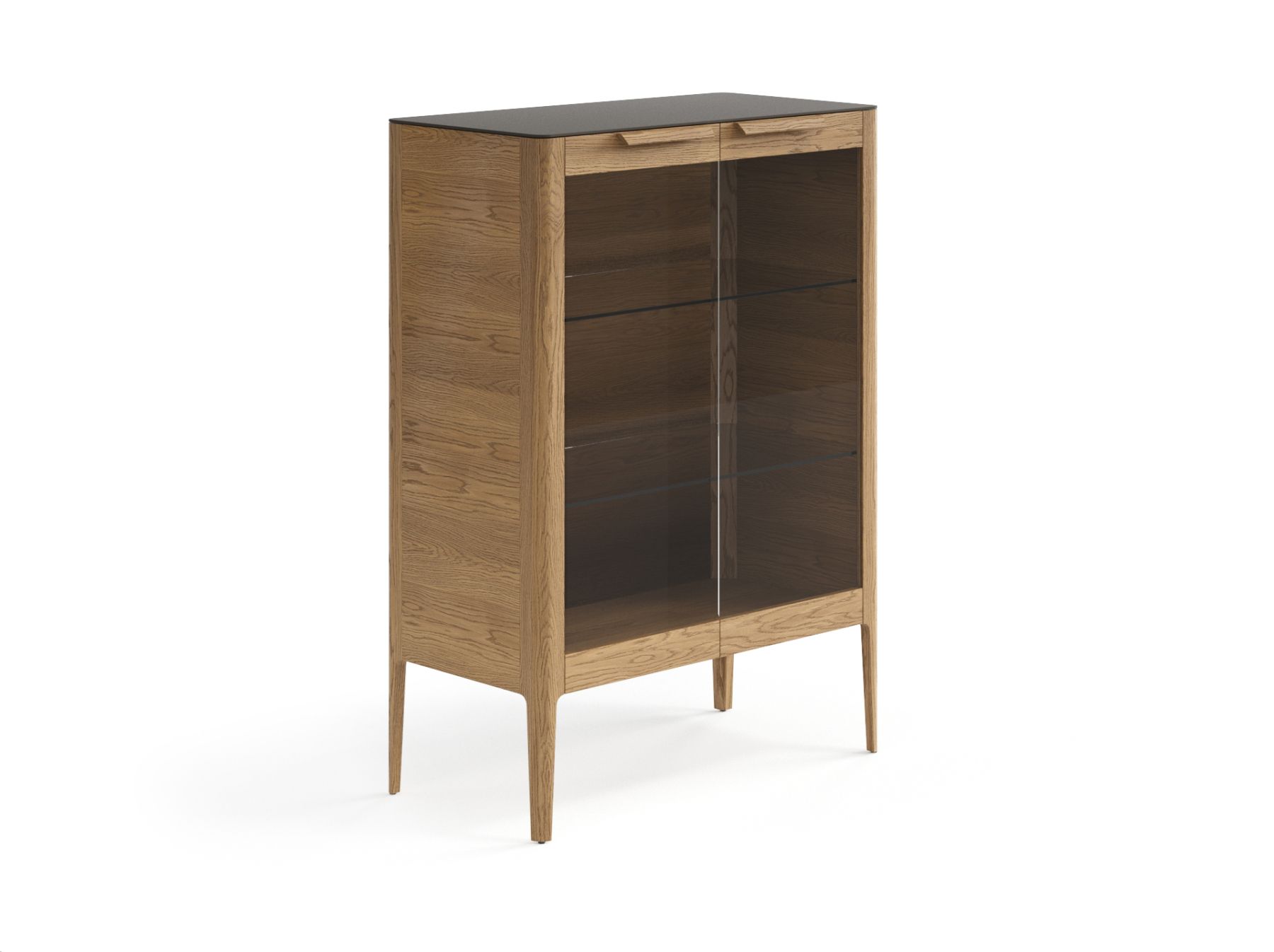 Изысканная витрина украсит интерьер дома и подчеркнёт вашу индивидуальность. Распашные фасады с гладкими серыми стёклами — главная особенность этого изделия, которая делает его уникальным. Две полки из калёного прозрачного стекла выдерживают сильные нагрузки, что позволит разместить внутри витрины книги, посуду или другие предметы декора.