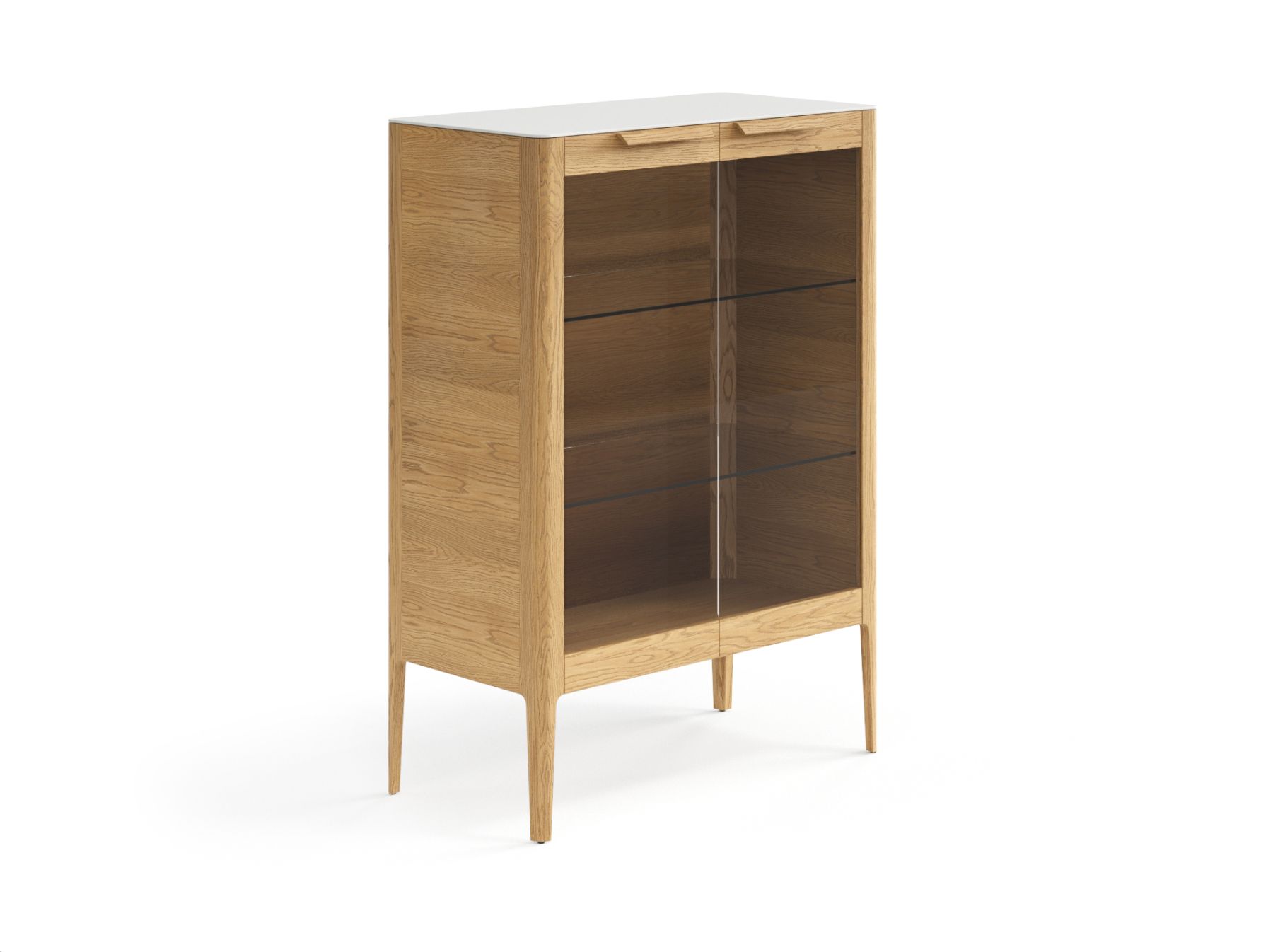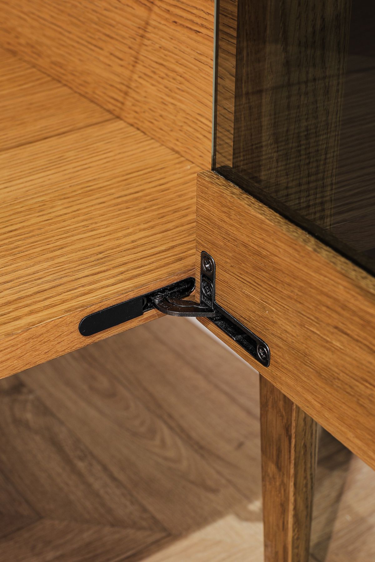 Изысканная витрина украсит интерьер дома и подчеркнёт вашу индивидуальность. Распашные фасады с гладкими серыми стёклами — главная особенность этого изделия, которая делает его уникальным. Две полки из калёного прозрачного стекла выдерживают сильные нагрузки, что позволит разместить внутри витрины книги, посуду или другие предметы декора.