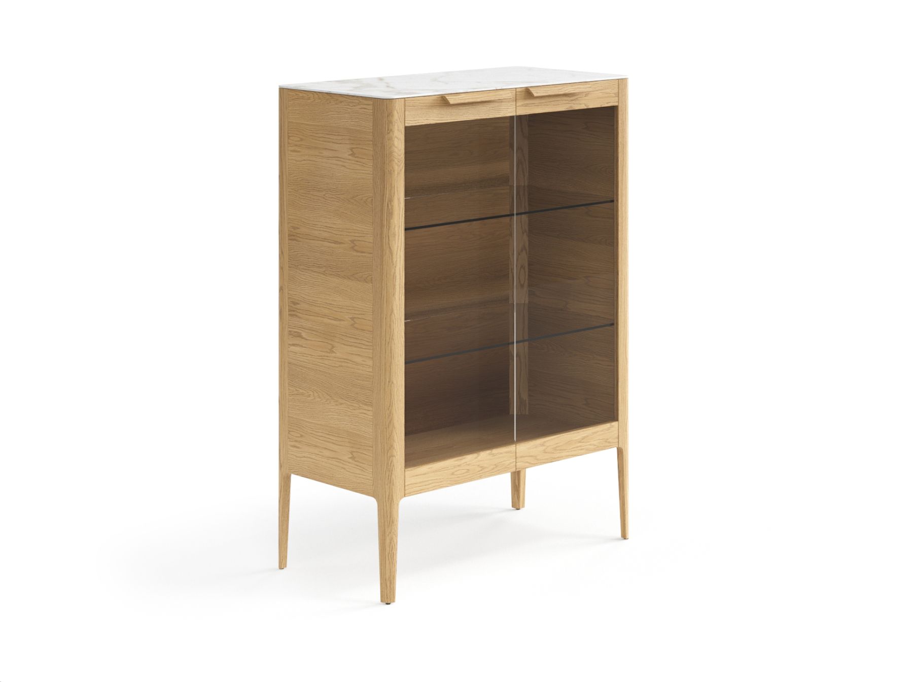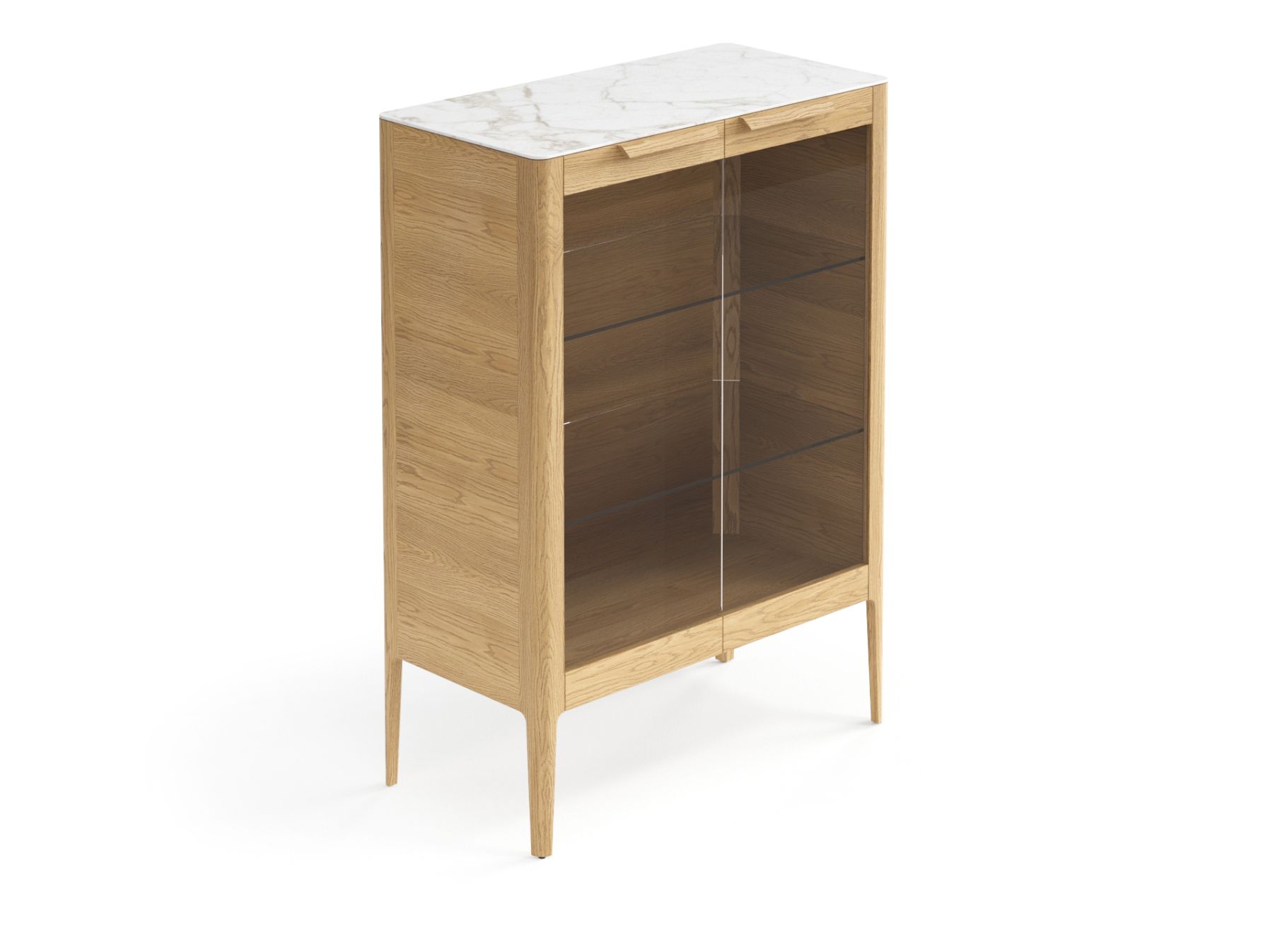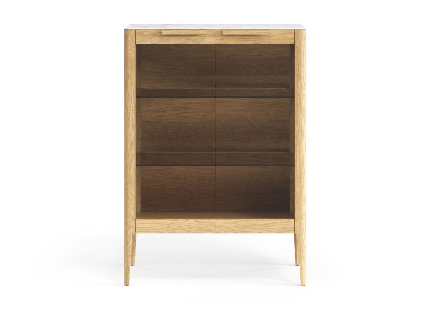 Ручки в форме крыла на фасадах подчёркивают элегантность изделия, благодаря удобному захвату пользование витриной становится максимально комфортным.