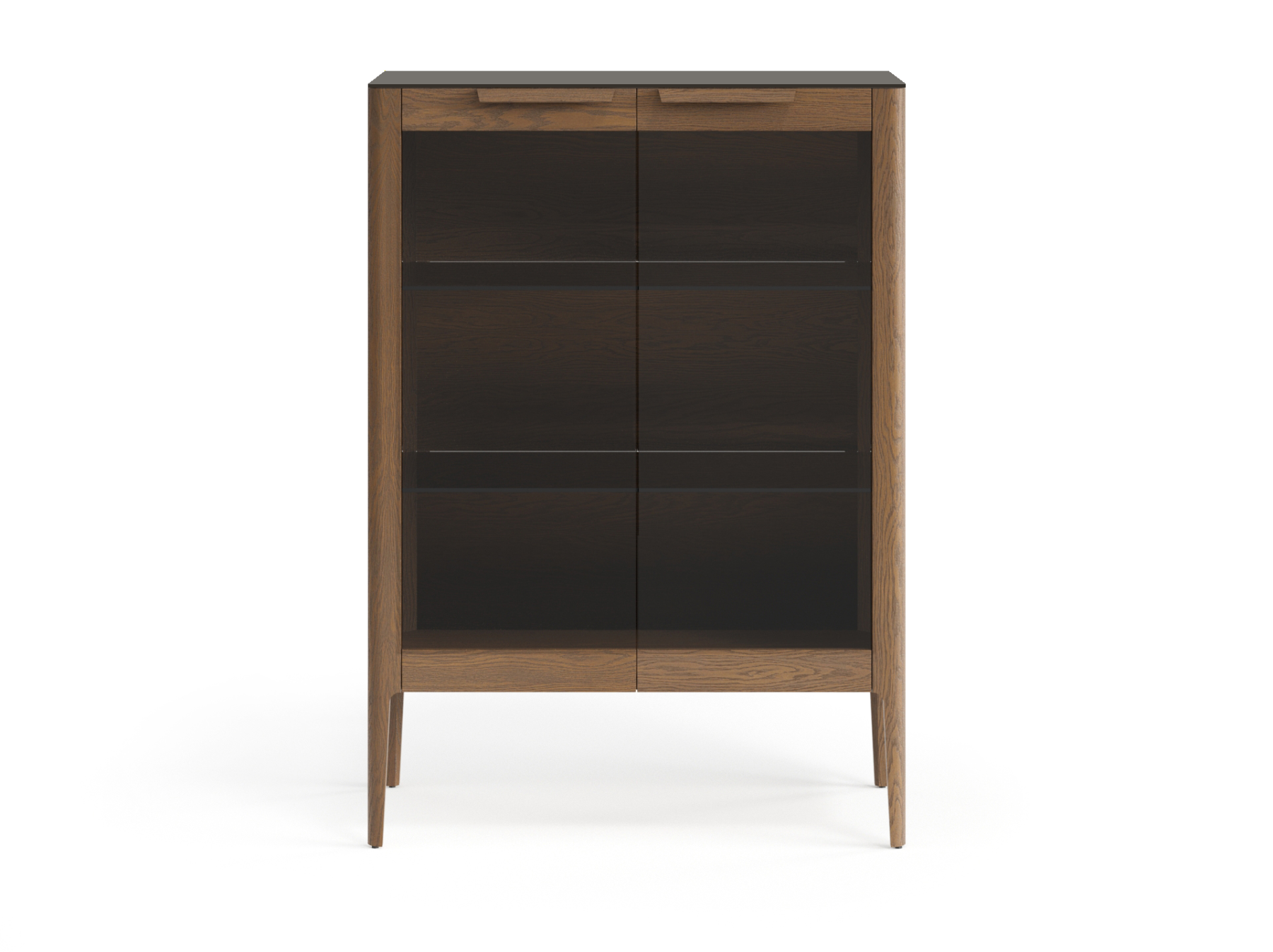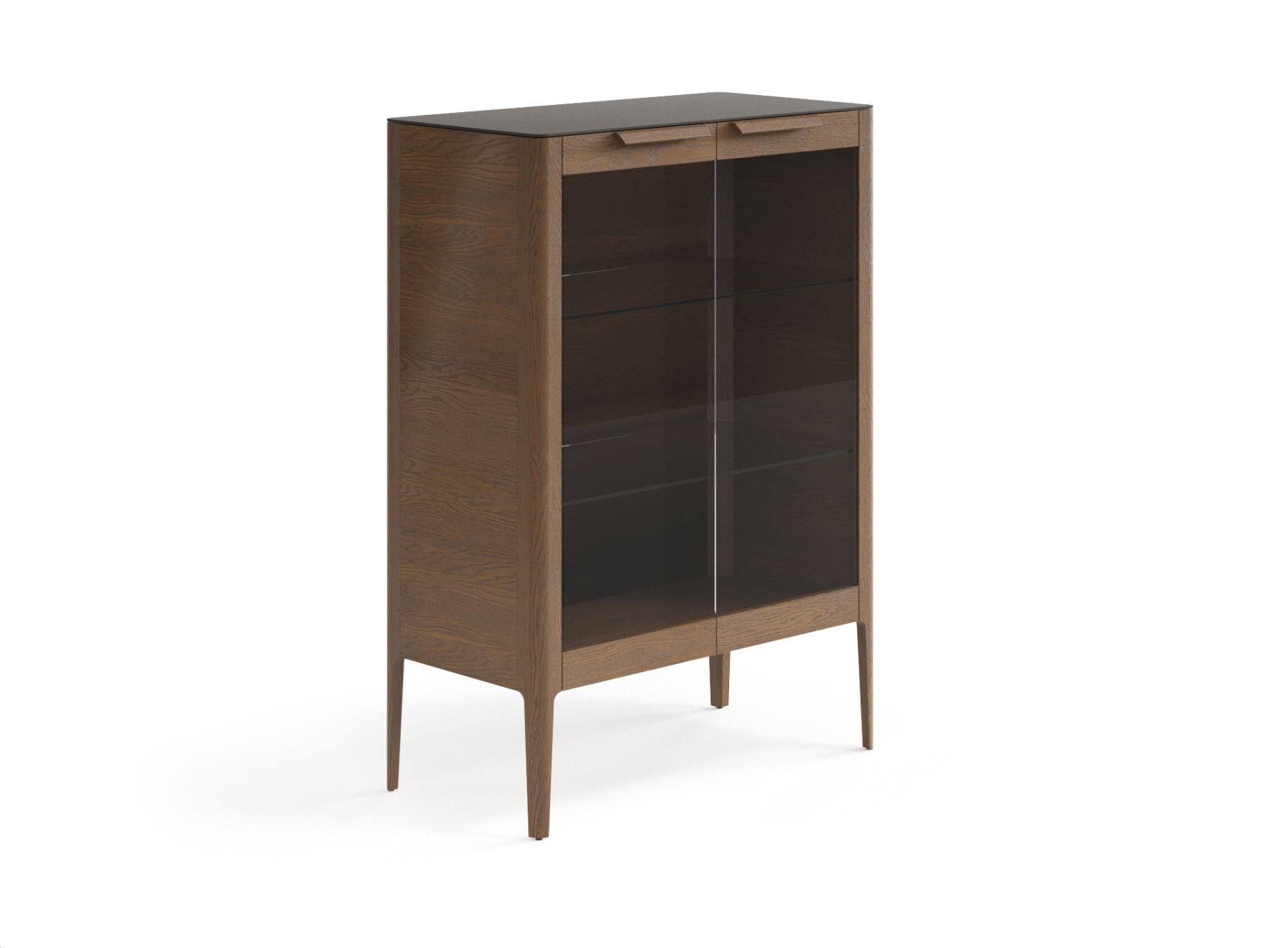 Изысканная витрина украсит интерьер дома и подчеркнёт вашу индивидуальность. Распашные фасады с гладкими серыми стёклами — главная особенность этого изделия, которая делает его уникальным. Две полки из калёного прозрачного стекла выдерживают сильные нагрузки, что позволит разместить внутри витрины книги, посуду или другие предметы декора.