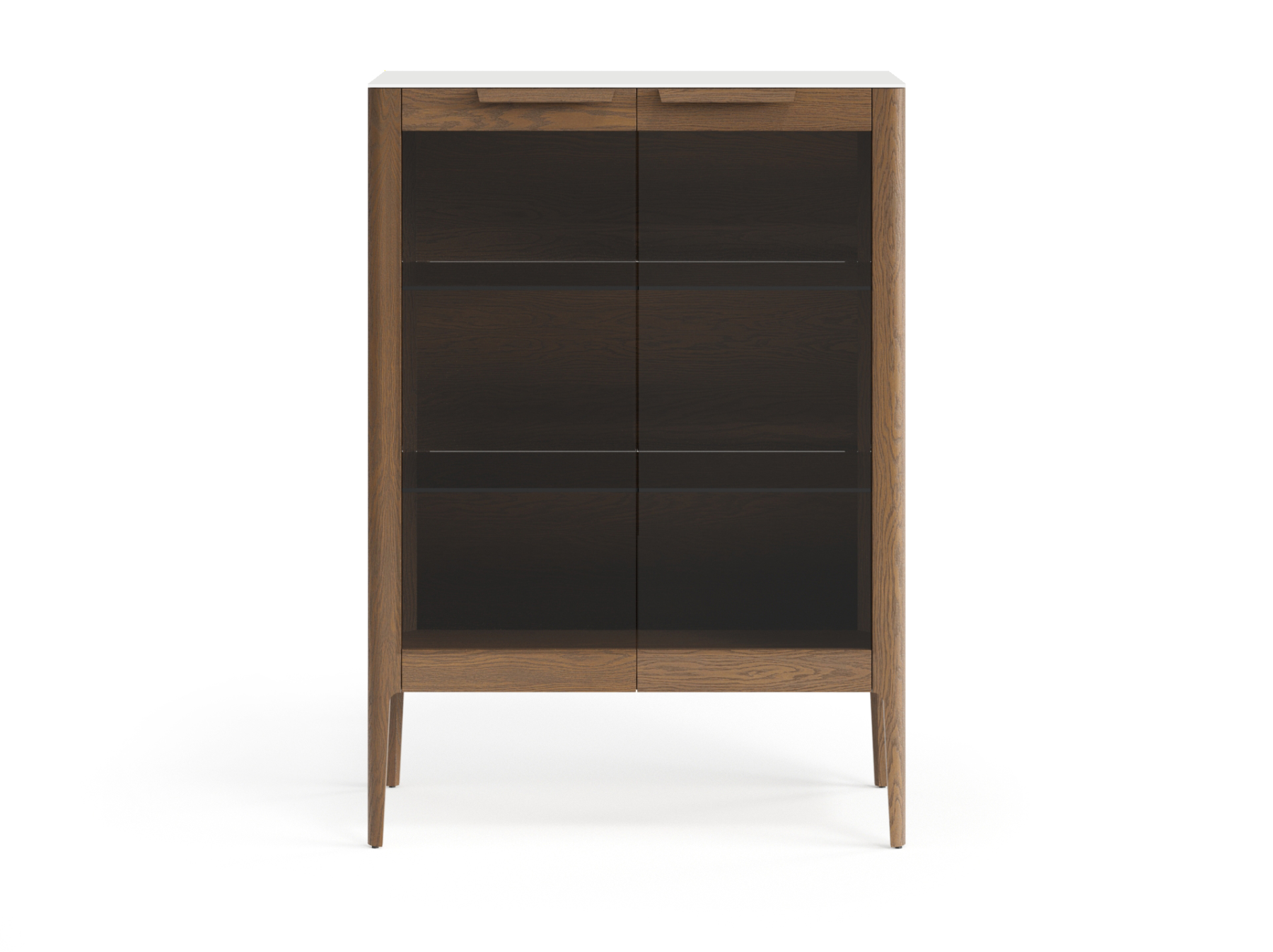 Изысканная витрина украсит интерьер дома и подчеркнёт вашу индивидуальность. Распашные фасады с гладкими серыми стёклами — главная особенность этого изделия, которая делает его уникальным. Две полки из калёного прозрачного стекла выдерживают сильные нагрузки, что позволит разместить внутри витрины книги, посуду или другие предметы декора.