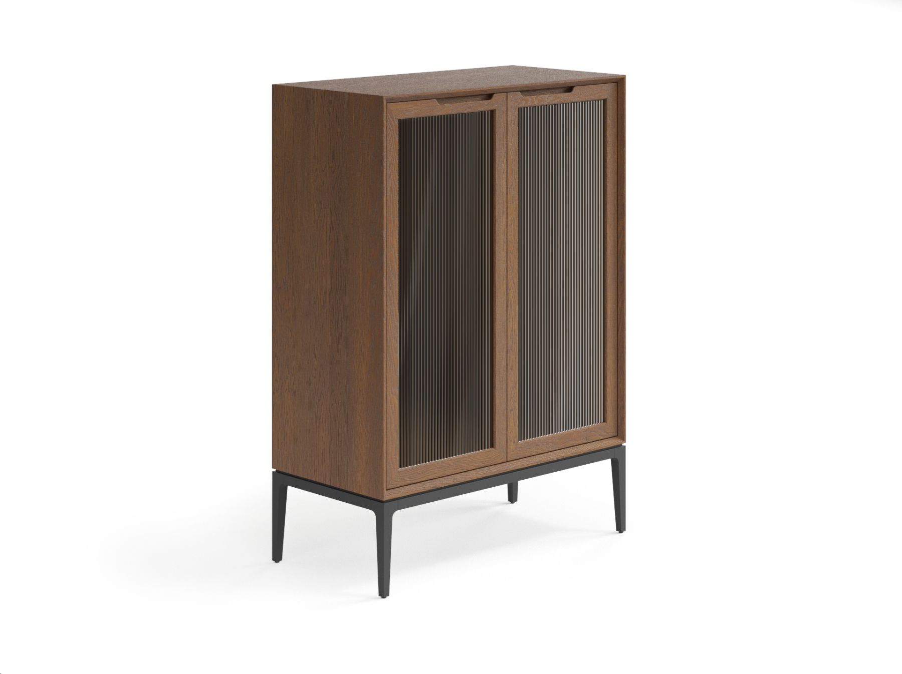 Фрезерованные ручки на фасаде подчёркивают элегантность изделия, благодаря удобному захвату пользование витриной становится максимально комфортным.