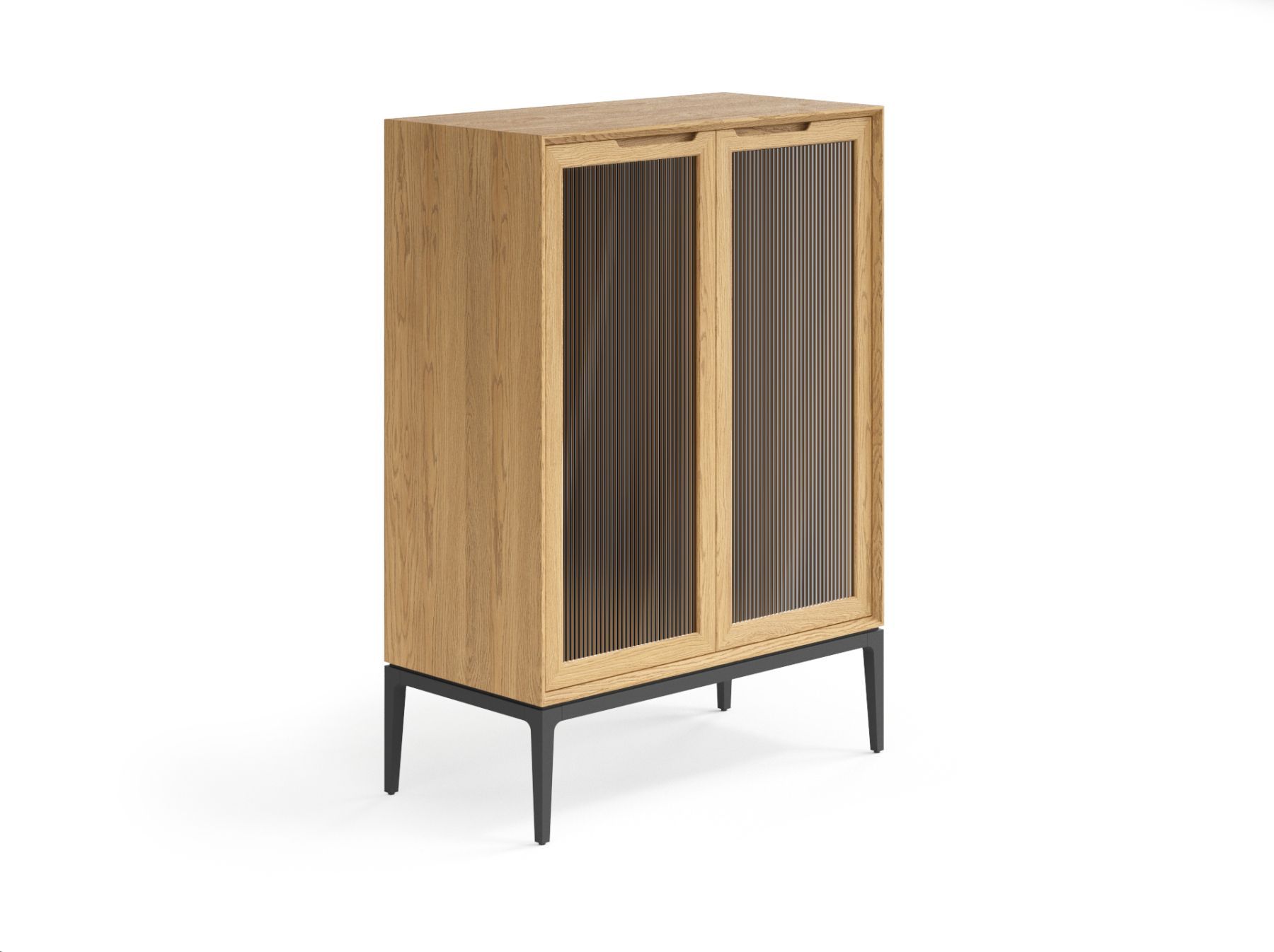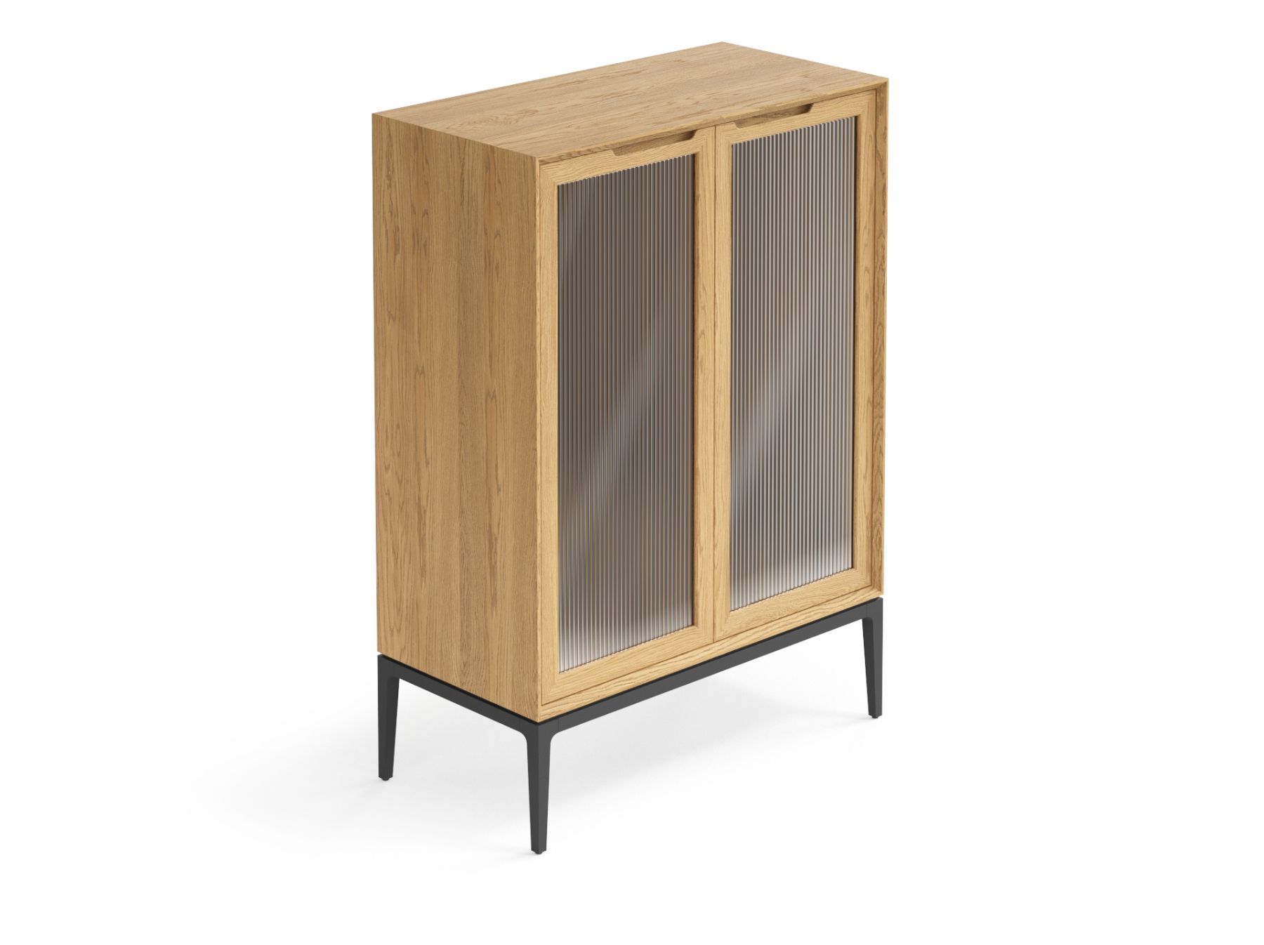 Фрезерованные ручки на фасаде подчёркивают элегантность изделия, благодаря удобному захвату пользование витриной становится максимально комфортным.