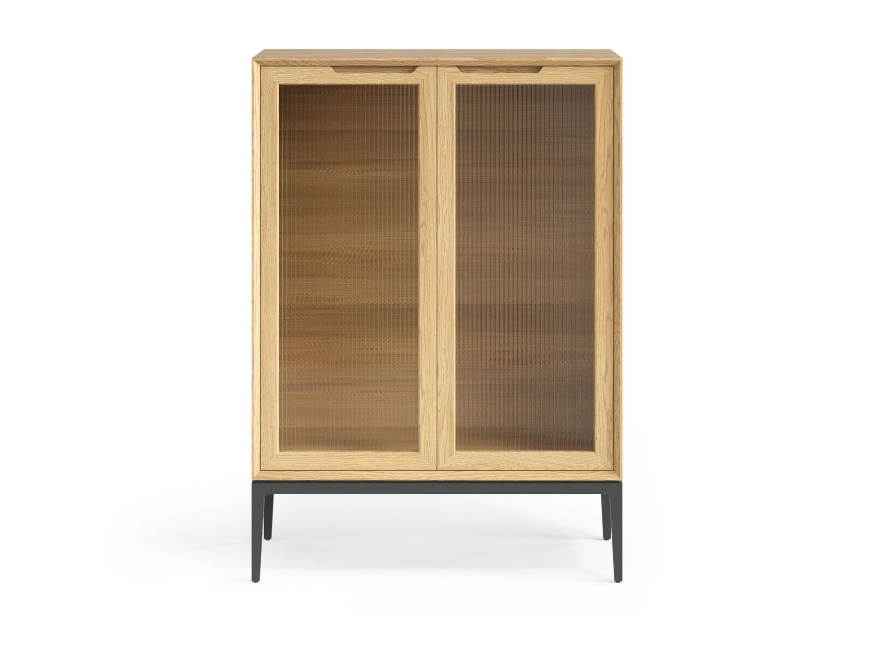 Фрезерованные ручки на фасаде подчёркивают элегантность изделия, благодаря удобному захвату пользование витриной становится максимально комфортным.