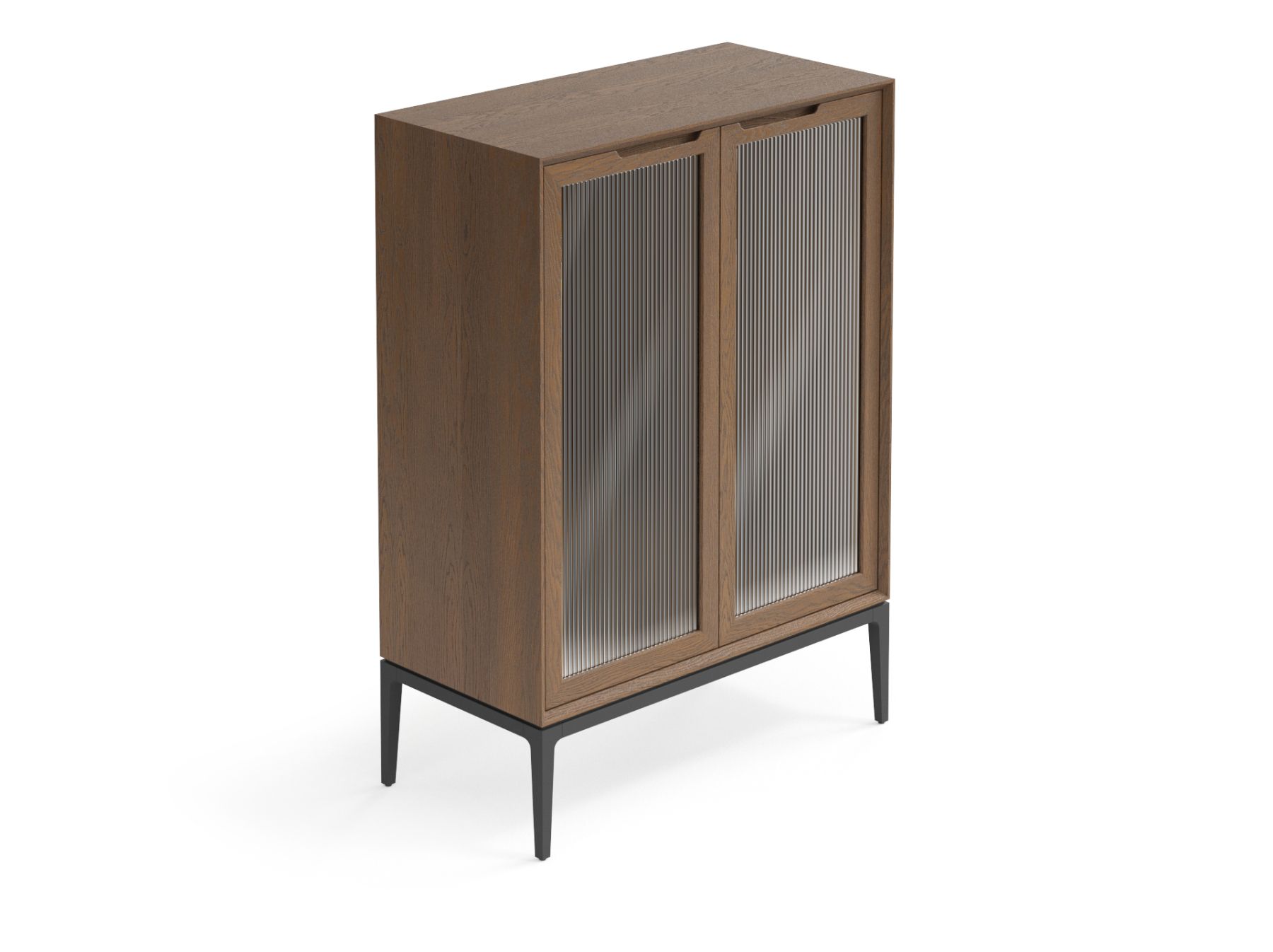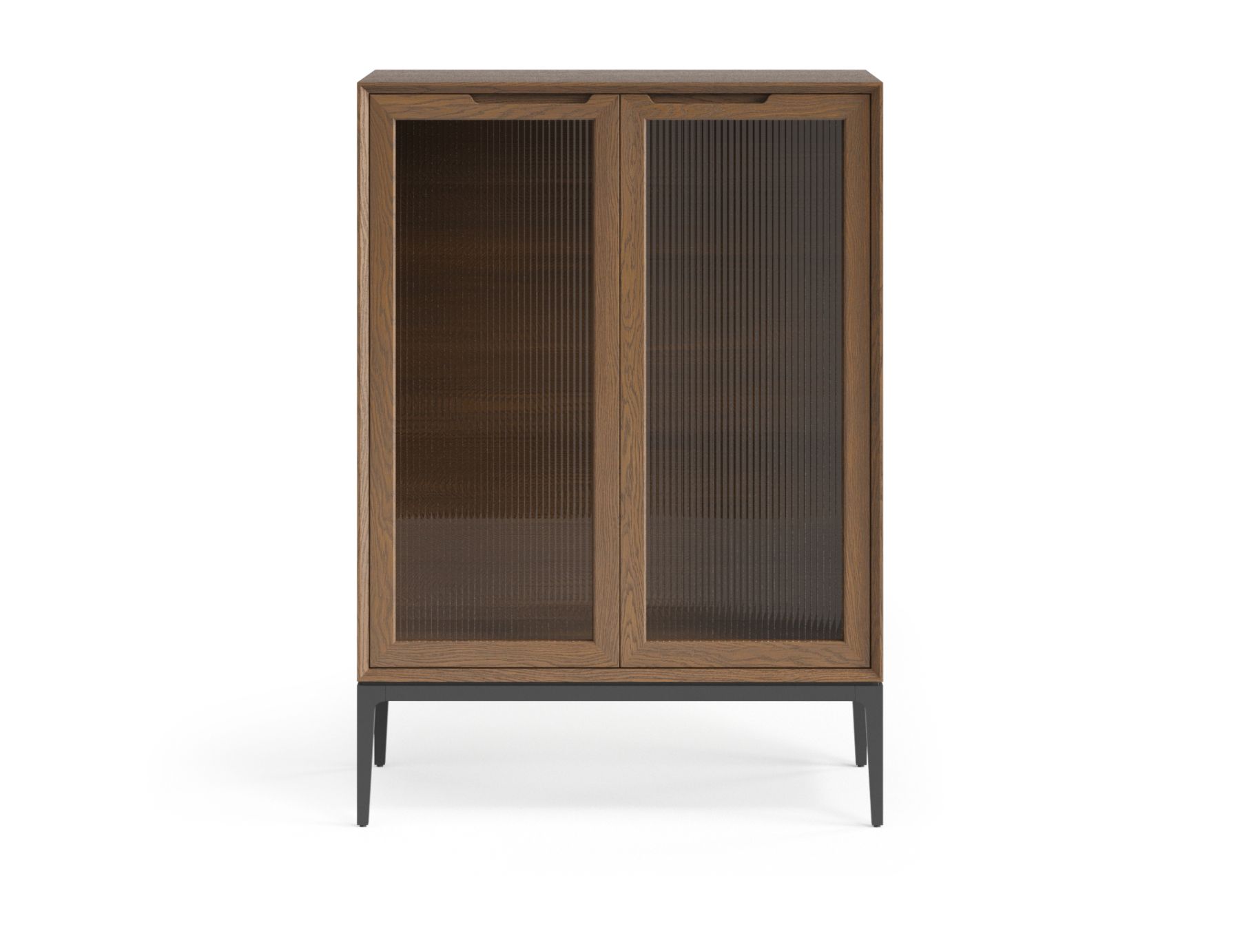 Фрезерованные ручки на фасаде подчёркивают элегантность изделия, благодаря удобному захвату пользование витриной становится максимально комфортным.