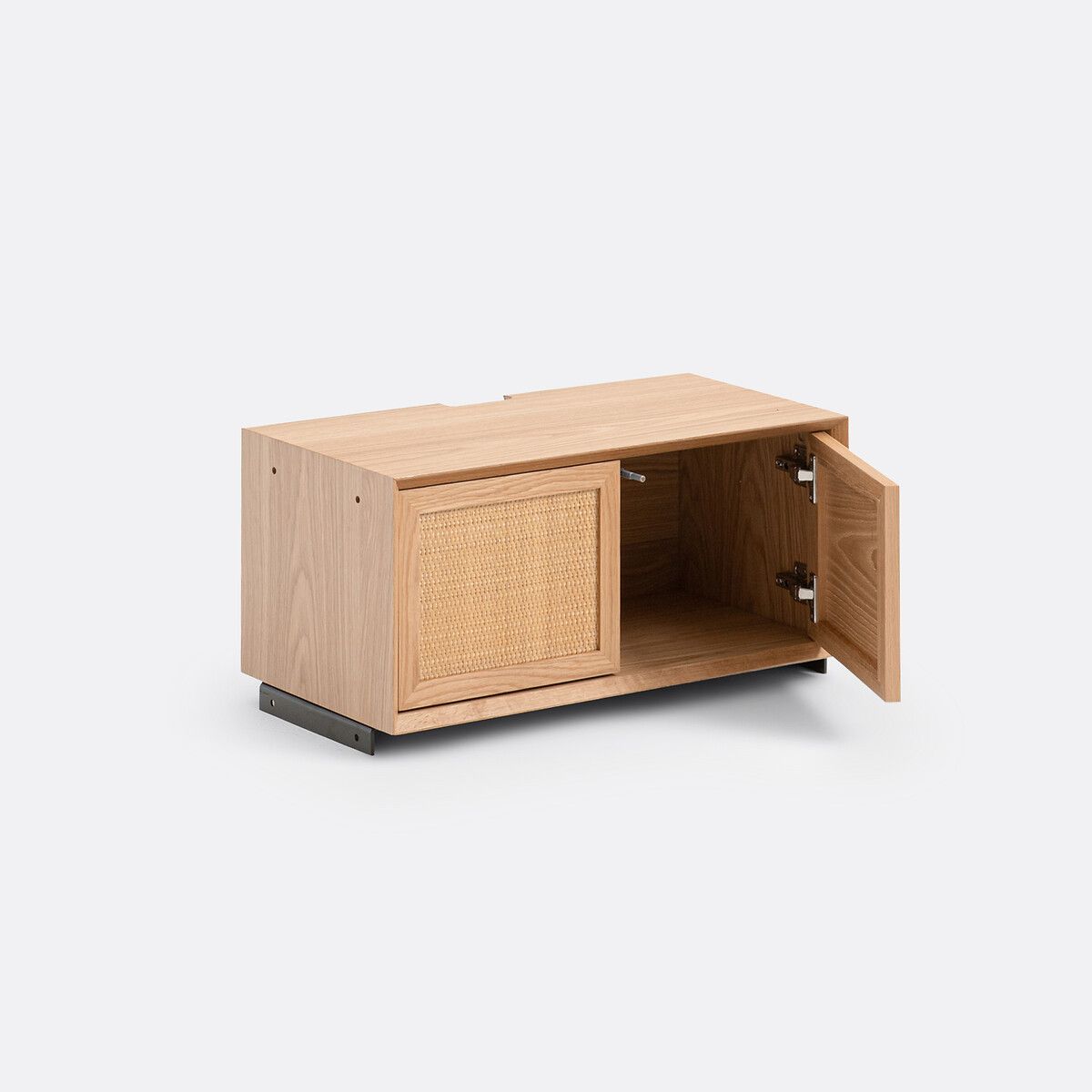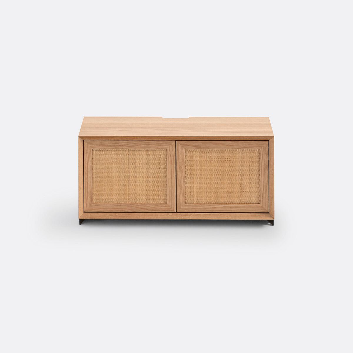 — Каркас из МДФ, шпонированной дубом, с НЦ-лакировкой и плетеный материал