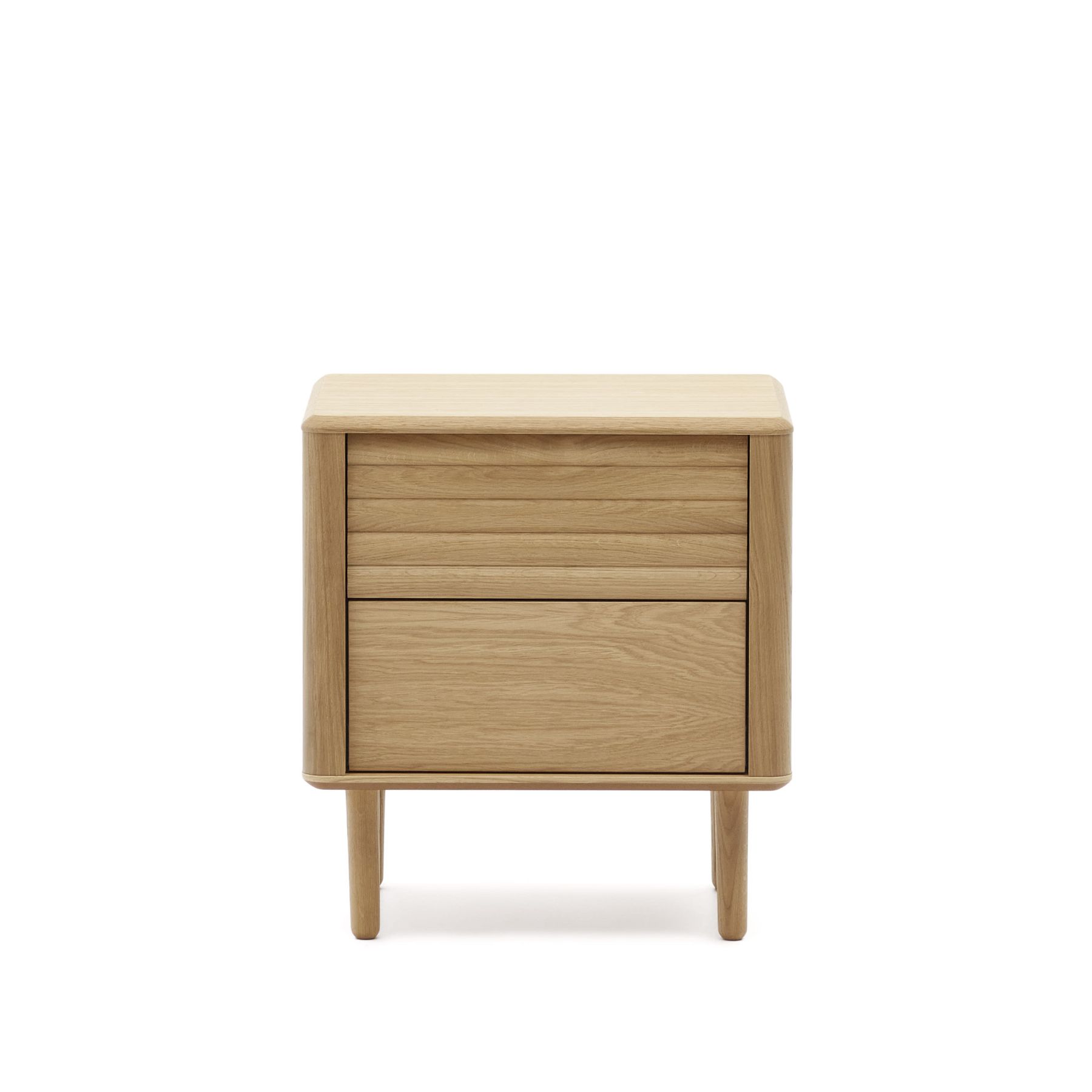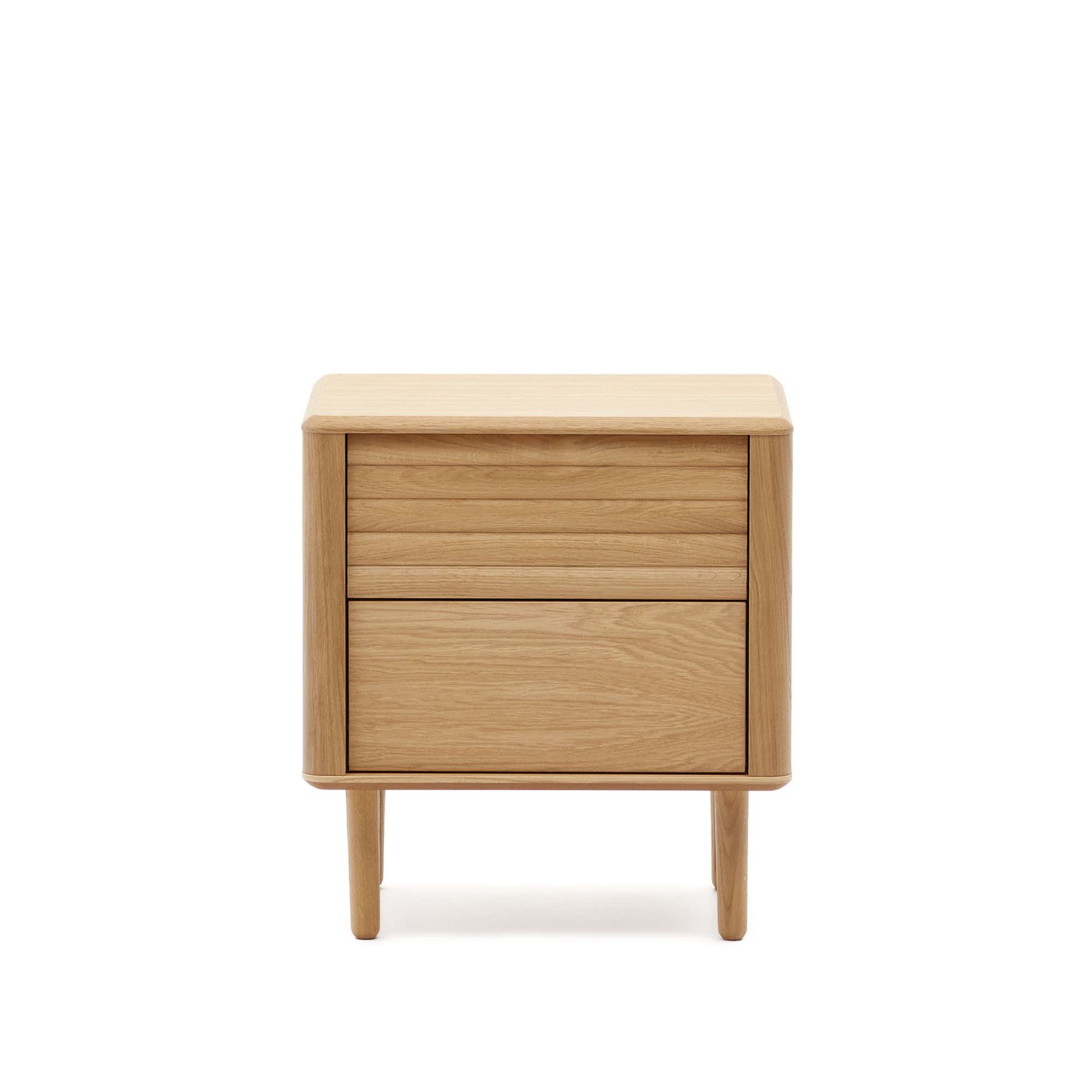 Прикроватная тумбочка из массива дуба и шпона дуба. Уникальный дизайн с закругленными краями и рельефами на дверцах.