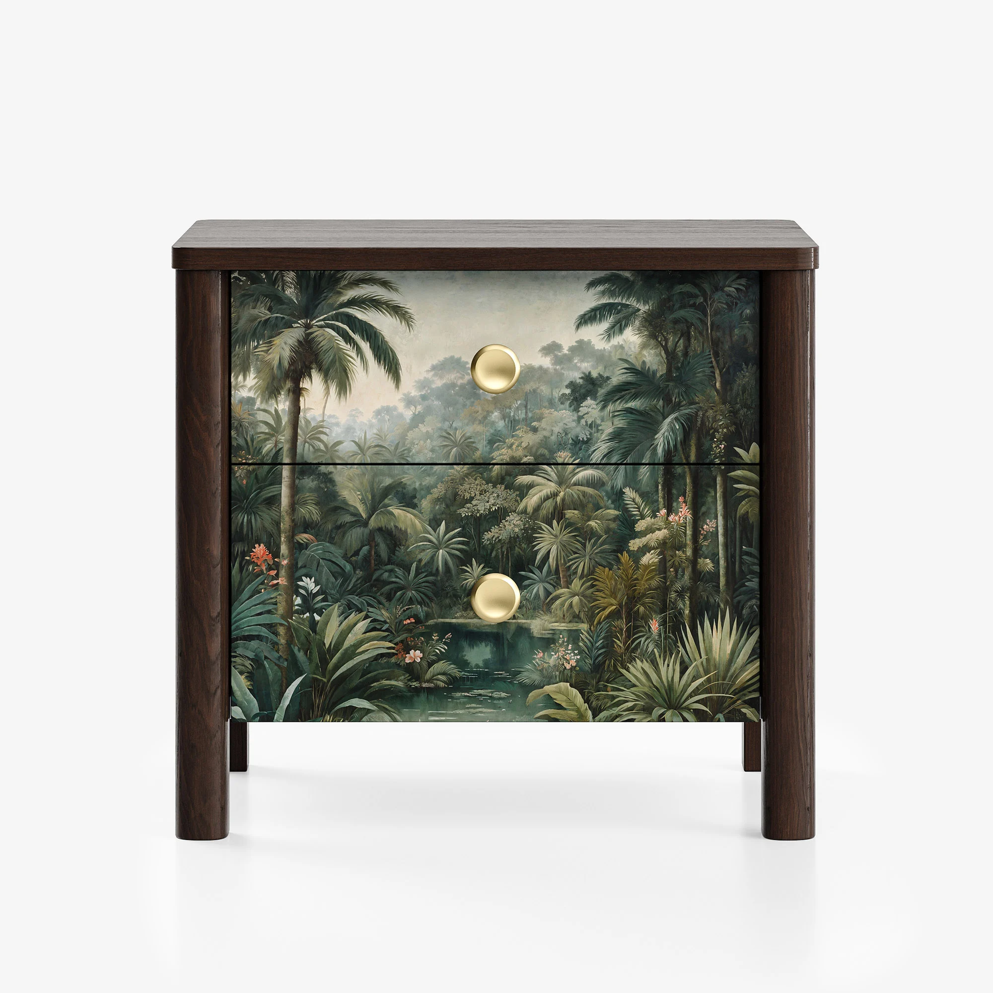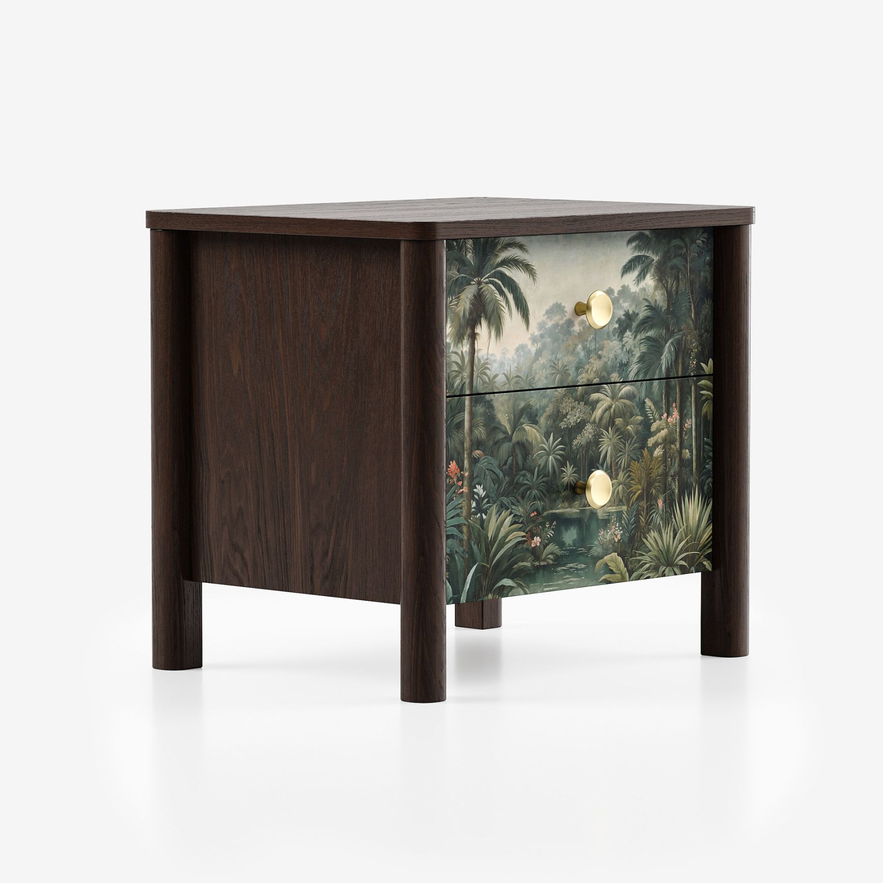 Два выдвижных ящика с плавными доводчиками и массивными ручками, каплевидная форма ножек, скругленные углы столешницы — мы позаботились о том, чтобы архитектура модели ассоциировалась с плавными природными формами и привносила гармонию в интерьер вашей спальни.