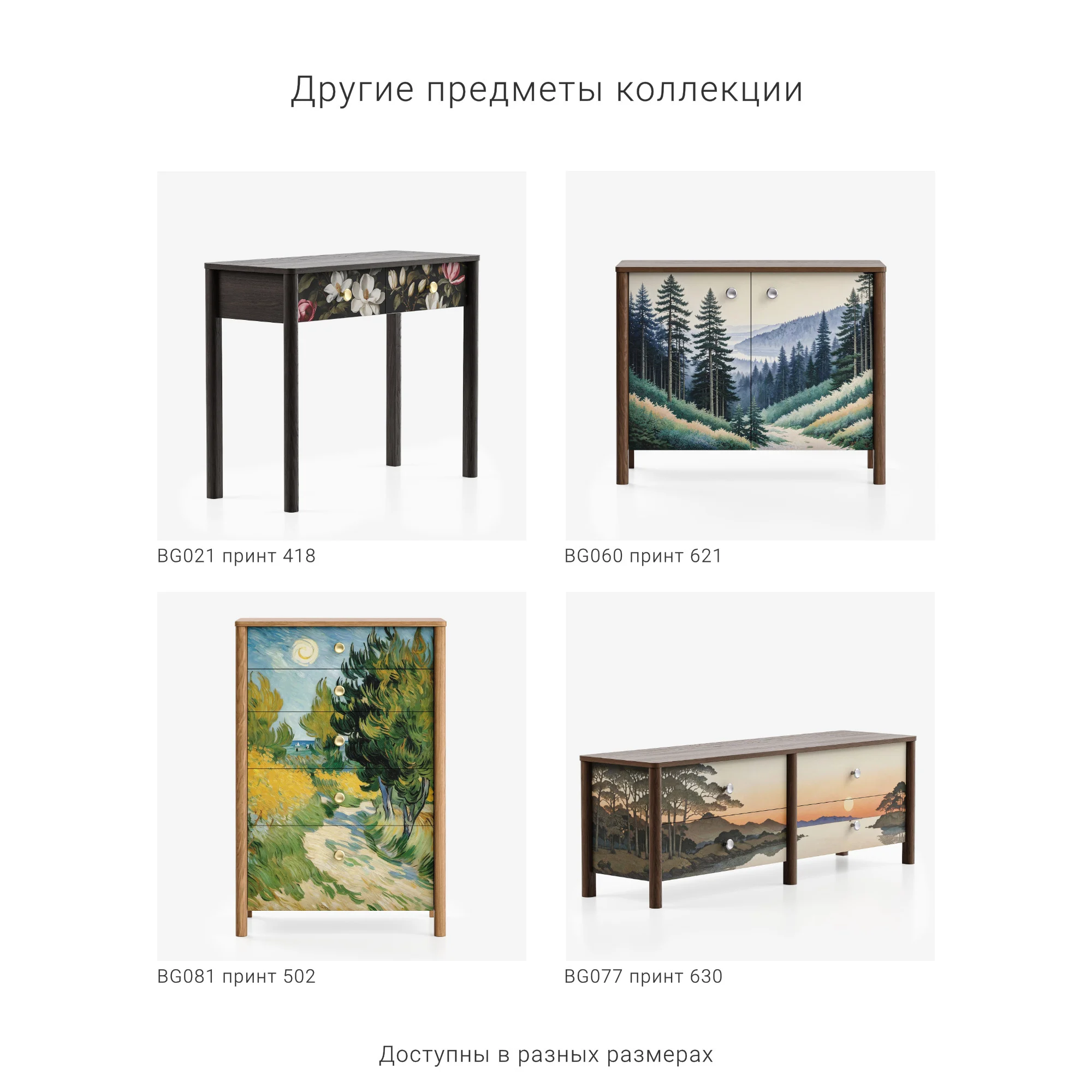 — Принты могут располагаться на фасадах мебели, а также на боковых элементах, окутывая ее с трёх сторон;