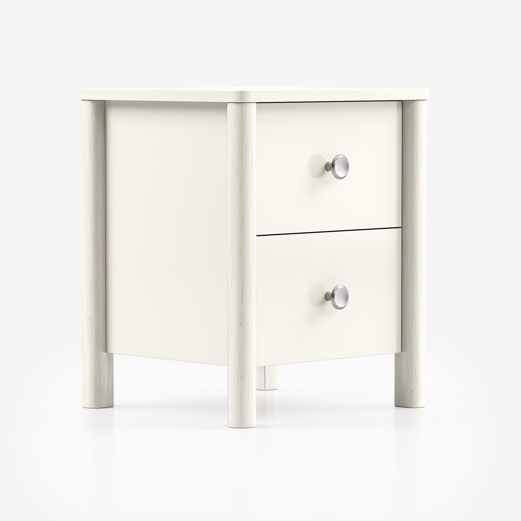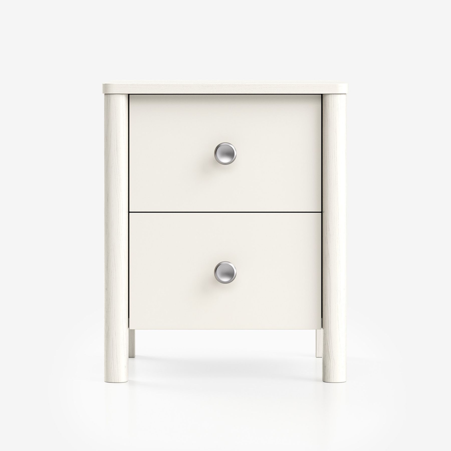 Два выдвижных ящика с плавными доводчиками и массивными ручками, каплевидная форма ножек, скругленные углы столешницы — мы позаботились о том, чтобы архитектура этого ассоциировалась с плавными природными формами и привносила гармонию в вашей спальне.