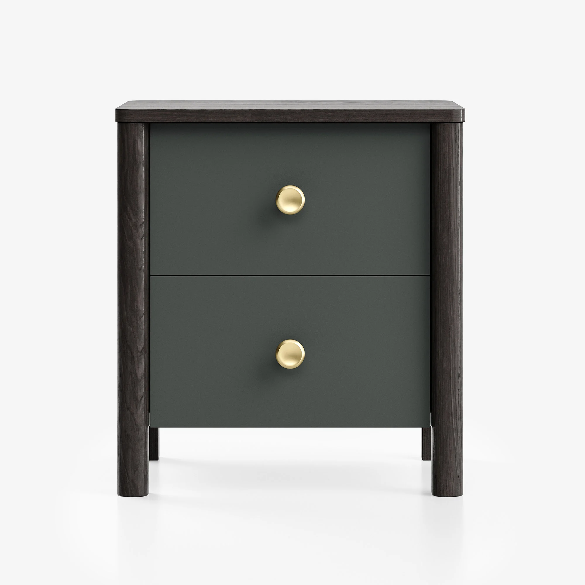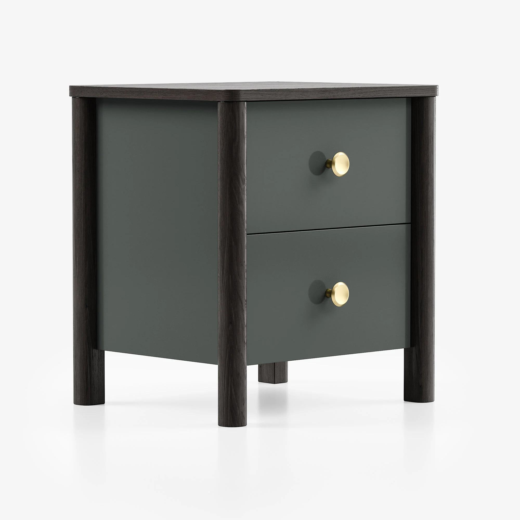 Два выдвижных ящика с плавными доводчиками и массивными ручками, каплевидная форма ножек, скругленные углы столешницы — мы позаботились о том, чтобы архитектура этого ассоциировалась с плавными природными формами и привносила гармонию в вашей спальне.
