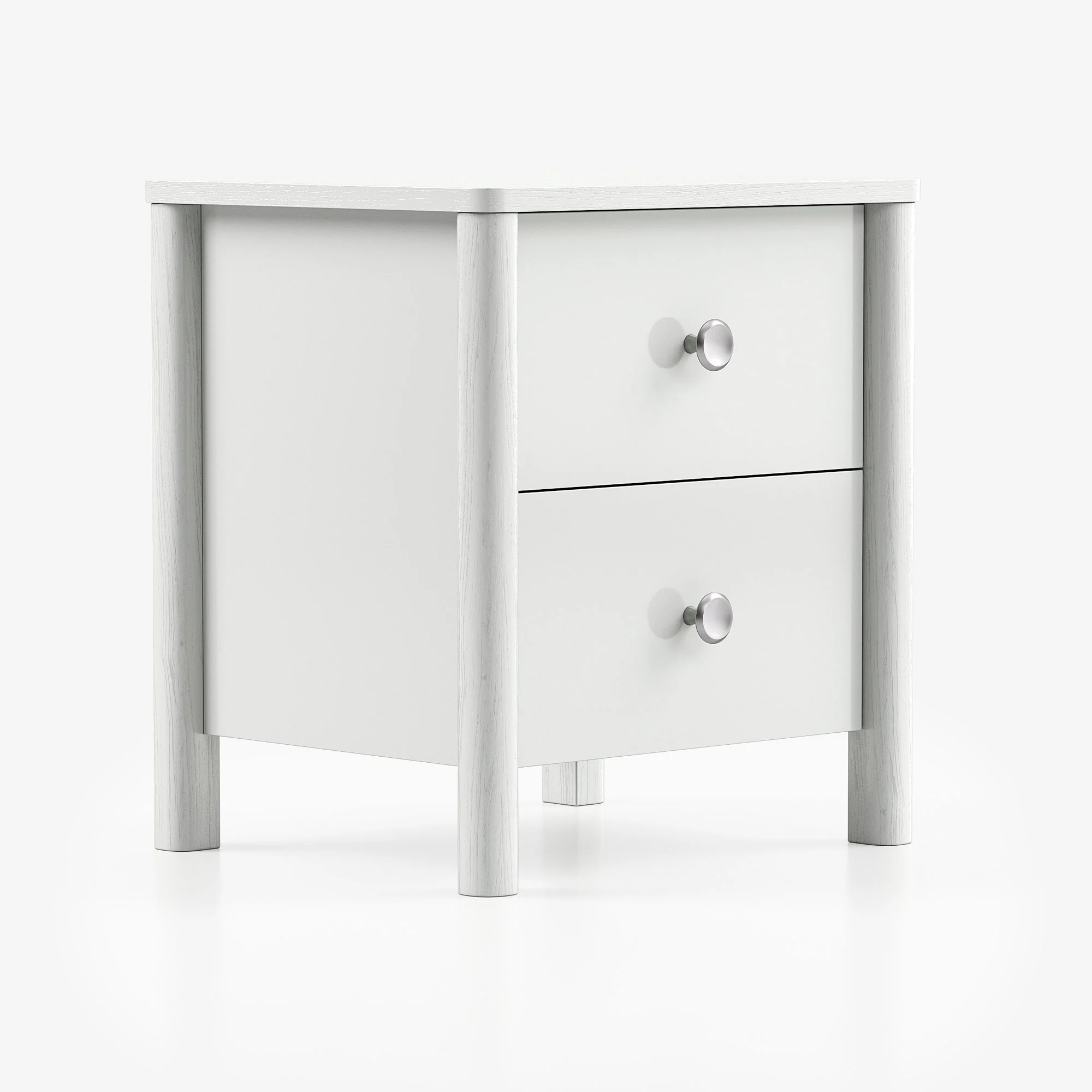 Два выдвижных ящика с плавными доводчиками и массивными ручками, каплевидная форма ножек, скругленные углы столешницы — мы позаботились о том, чтобы архитектура этого ассоциировалась с плавными природными формами и привносила гармонию в вашей спальне.