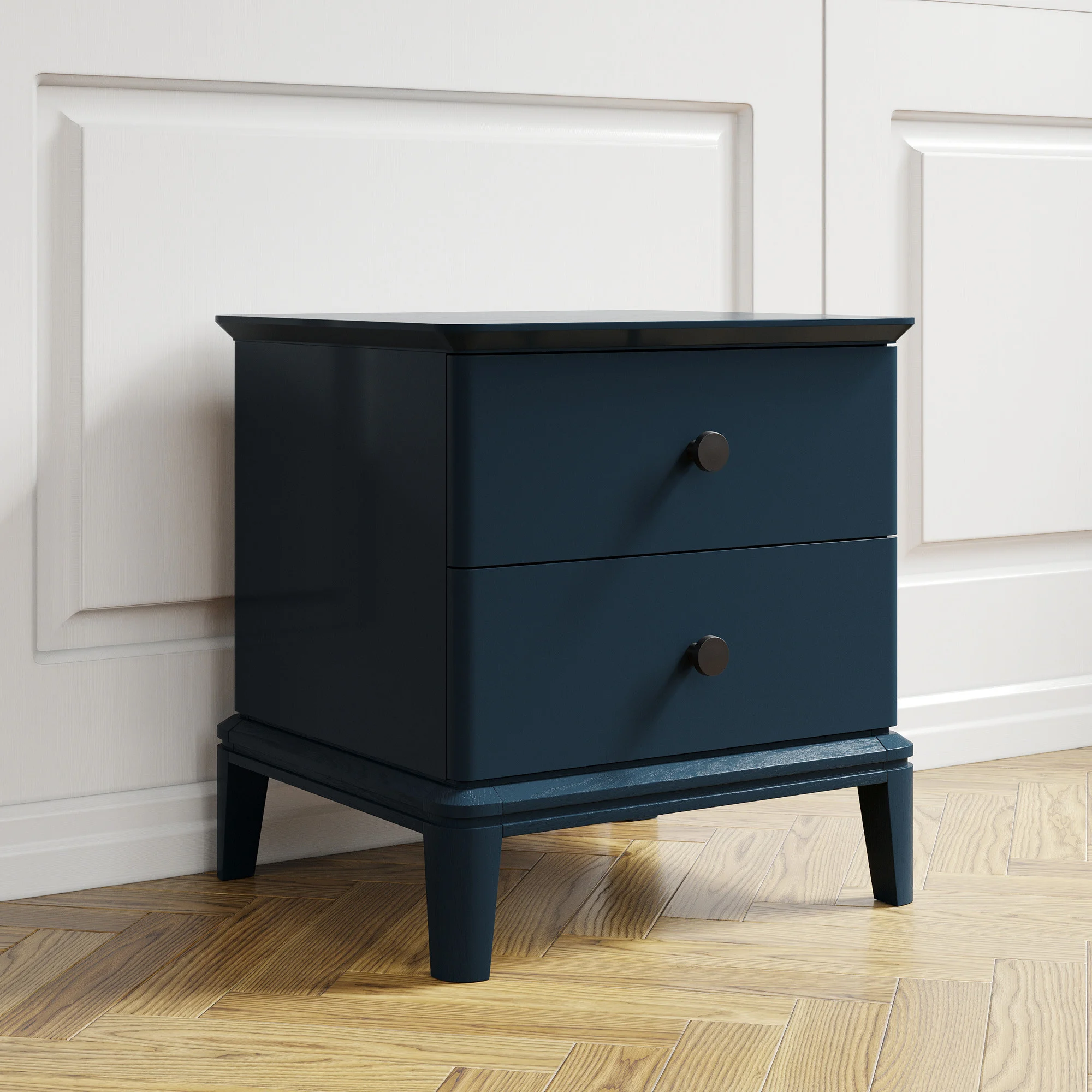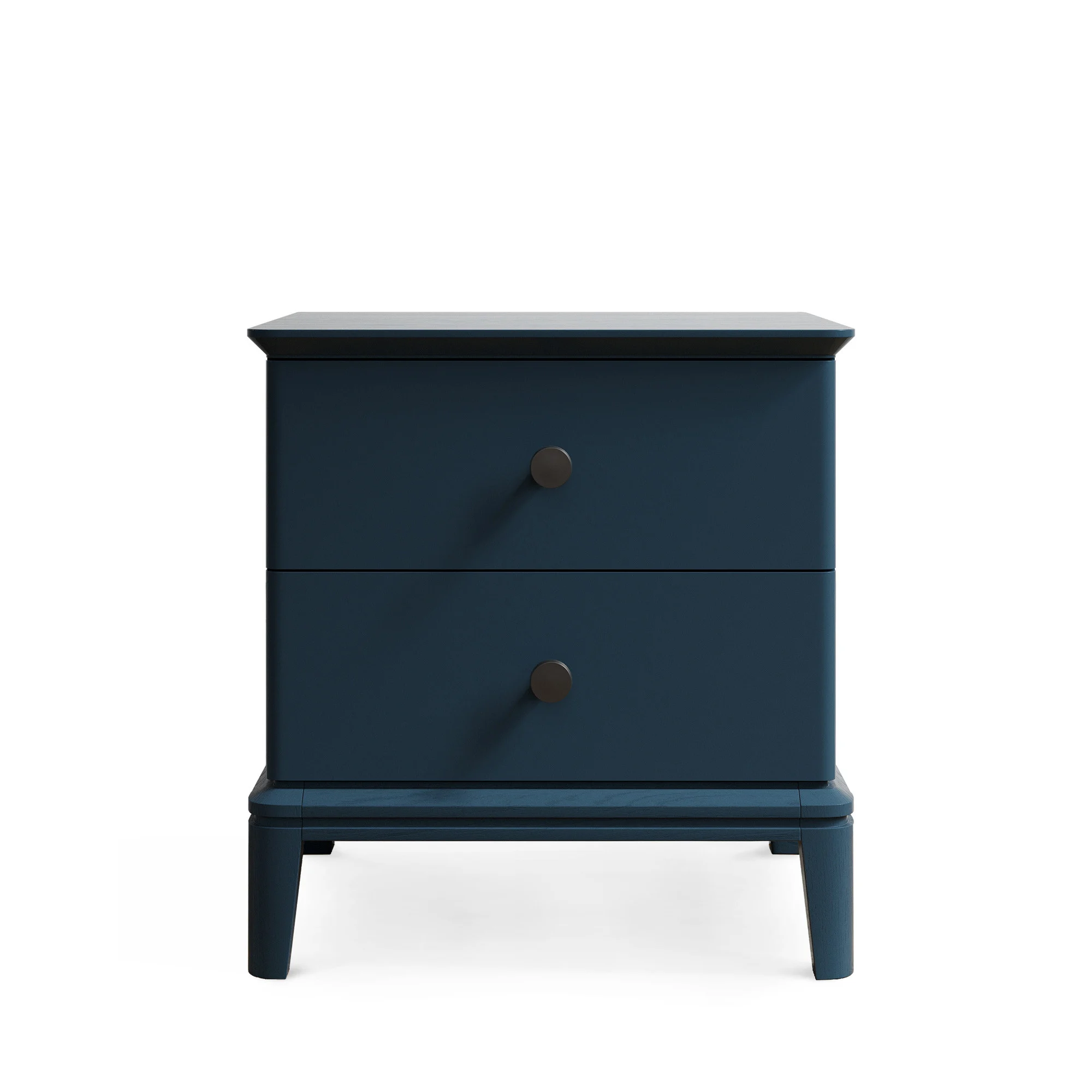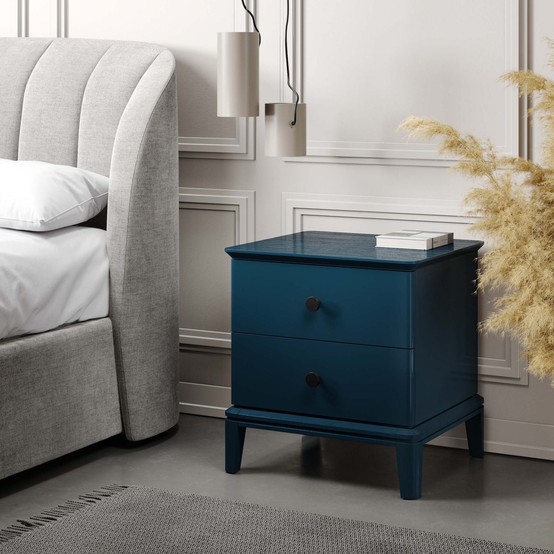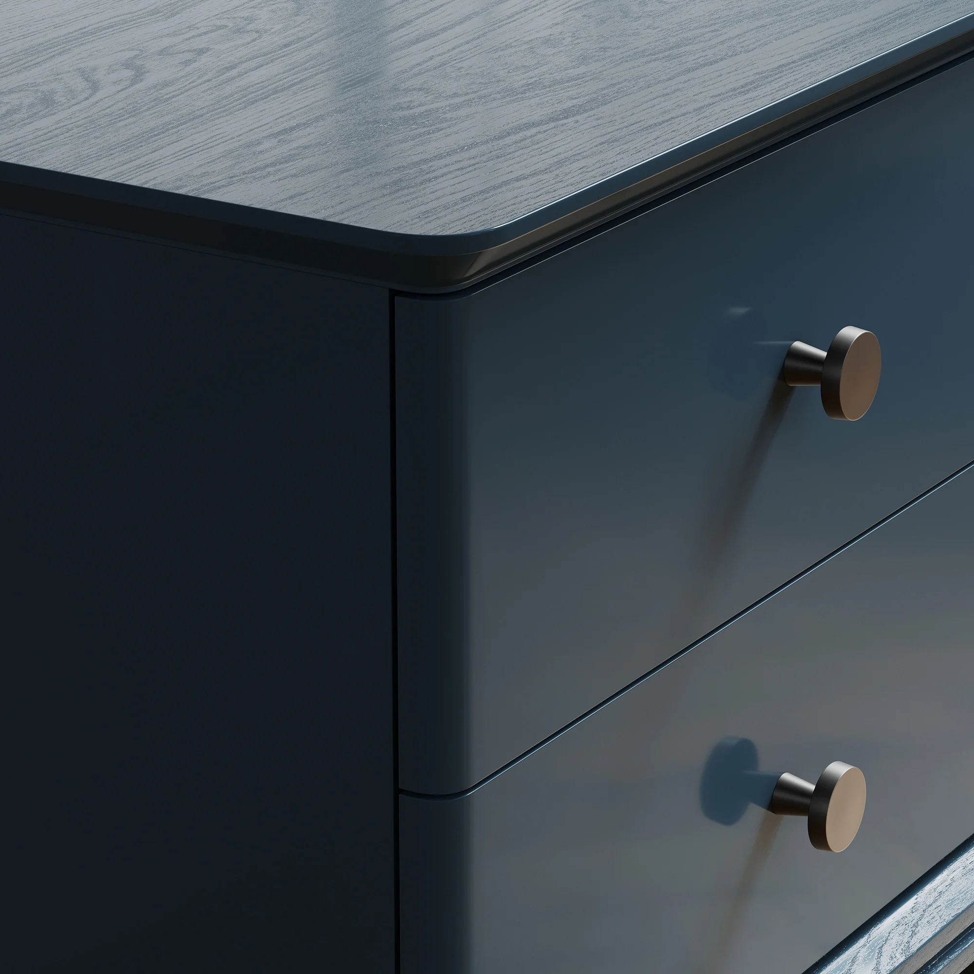 Прикроватная тумба, которая привлекает внимание, несмотря на свои компактные габариты. Узнаваемые элементы современной классики — золотые детали, изящная ступенчатая фрезеровка основания и столешницы, придающая тумбе узнаваемый силуэт стиля. Еще одна особенность — трехсторонняя гравировка, переходящая с фасада на боковые стенки, завершает композицию.