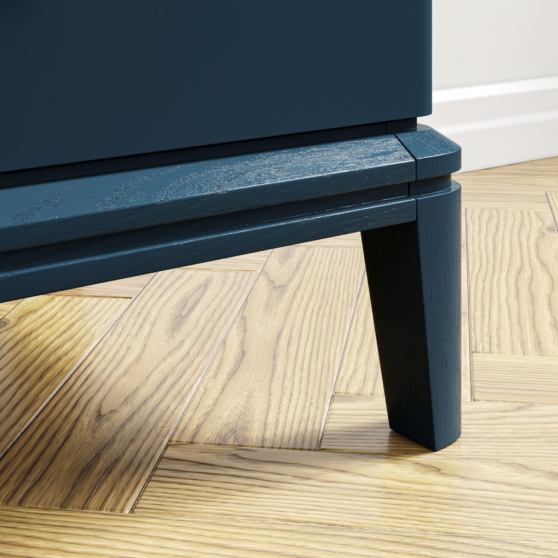 Тумба оснащена двумя ящиками для хранения, которые украшают массивные ручки в отделке «брашированное золото». Ножки из массива дуба обрабатываются вручную: их многогранные очертания — результат кропотливой работы наших специалистов.