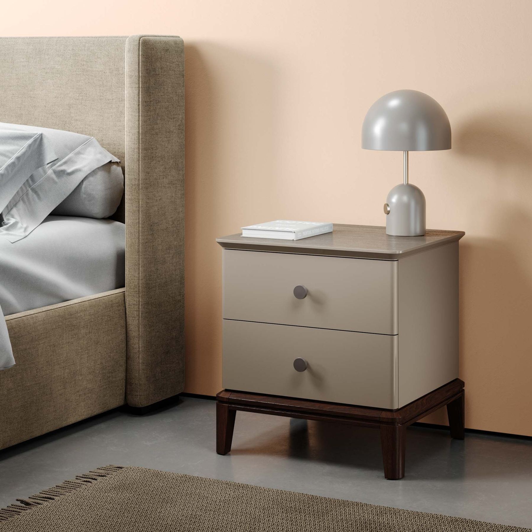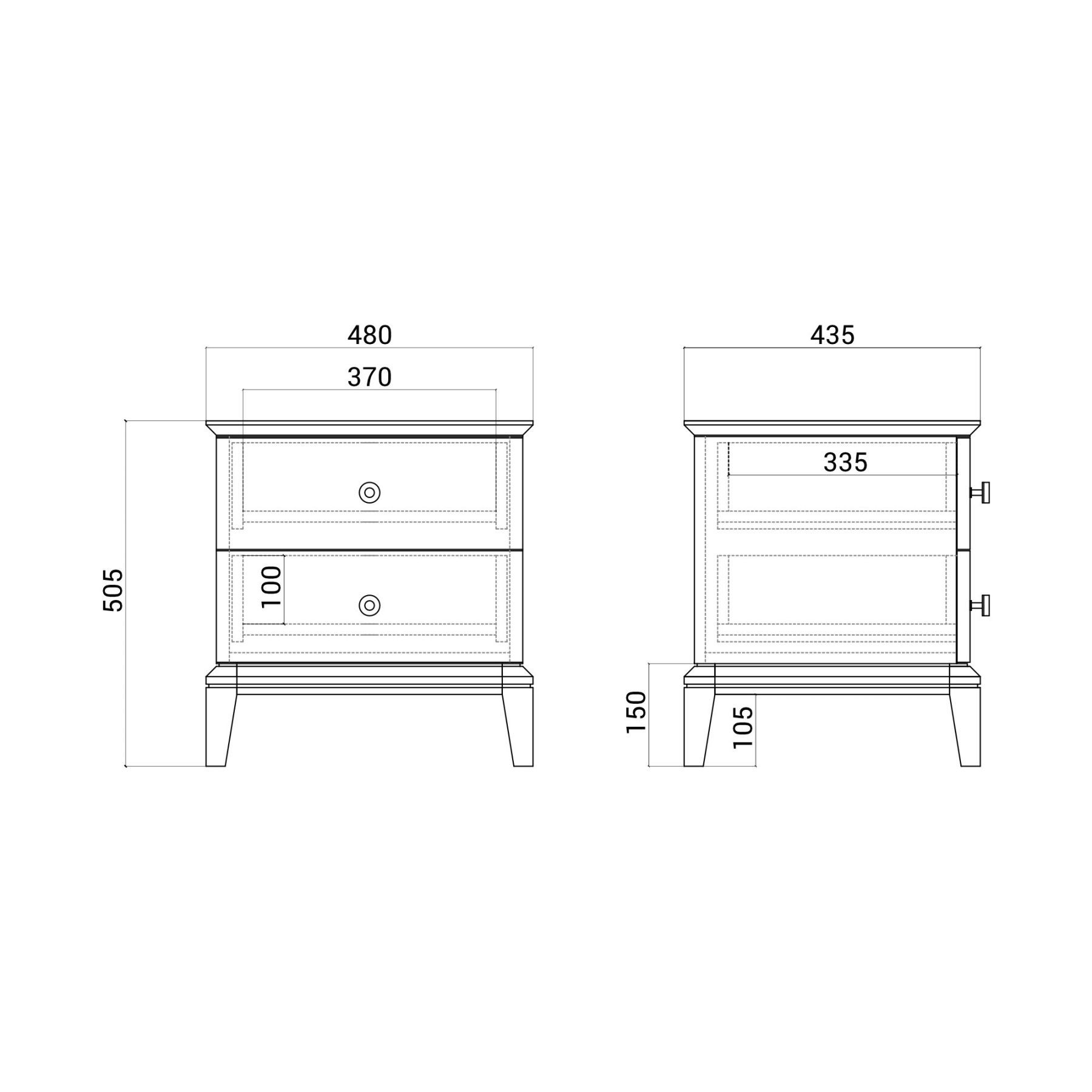 Тумба оснащена двумя ящиками для хранения, которые украшают массивные ручки в стильной отделке. Ножки из массива дуба обрабатываются вручную: их многогранные очертания — результат кропотливой работы наших специалистов.