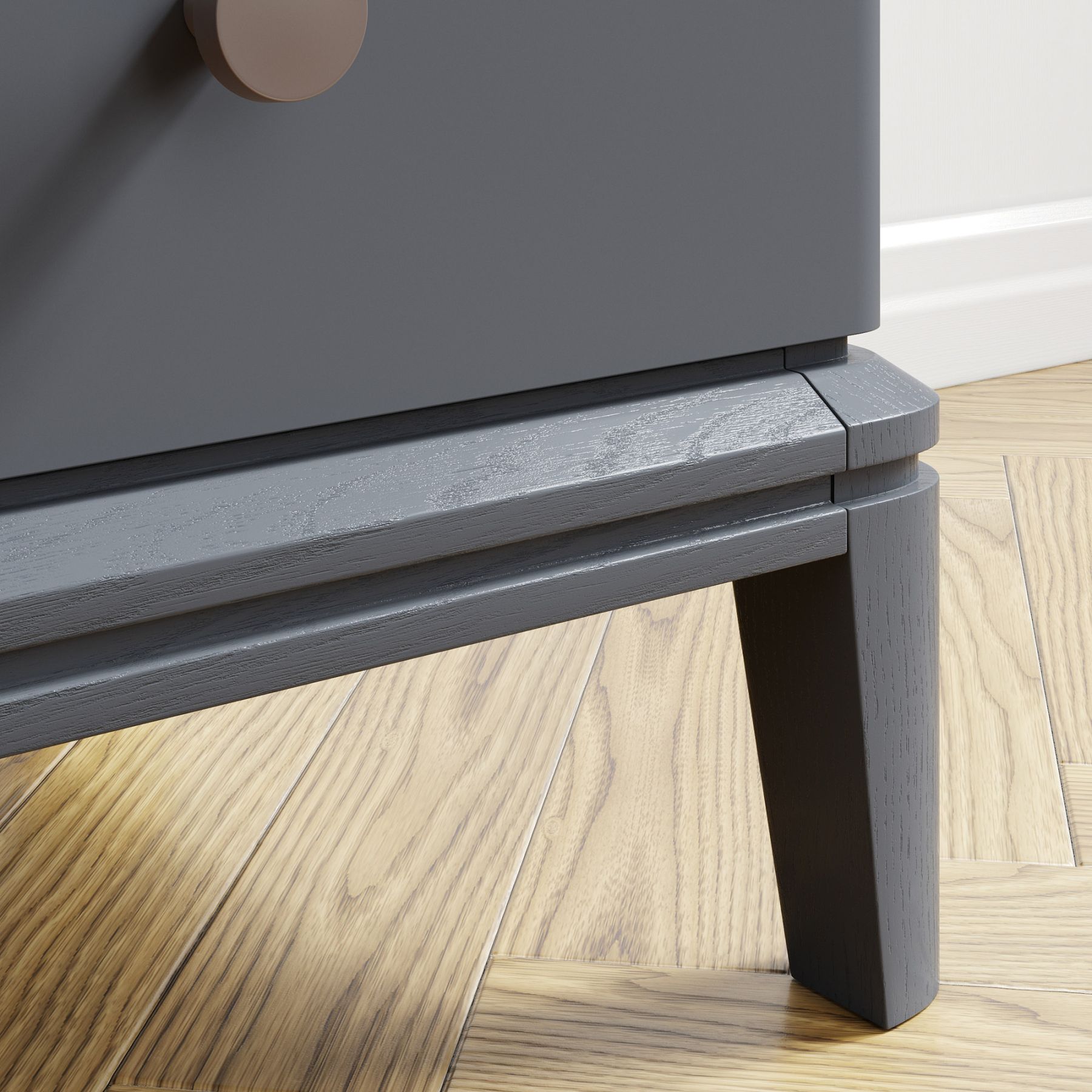 Тумба оснащена двумя ящиками для хранения, которые украшают массивные ручки в стильной отделке. Ножки из массива дуба обрабатываются вручную: их многогранные очертания результат кропотливой работы наших специалистов.
