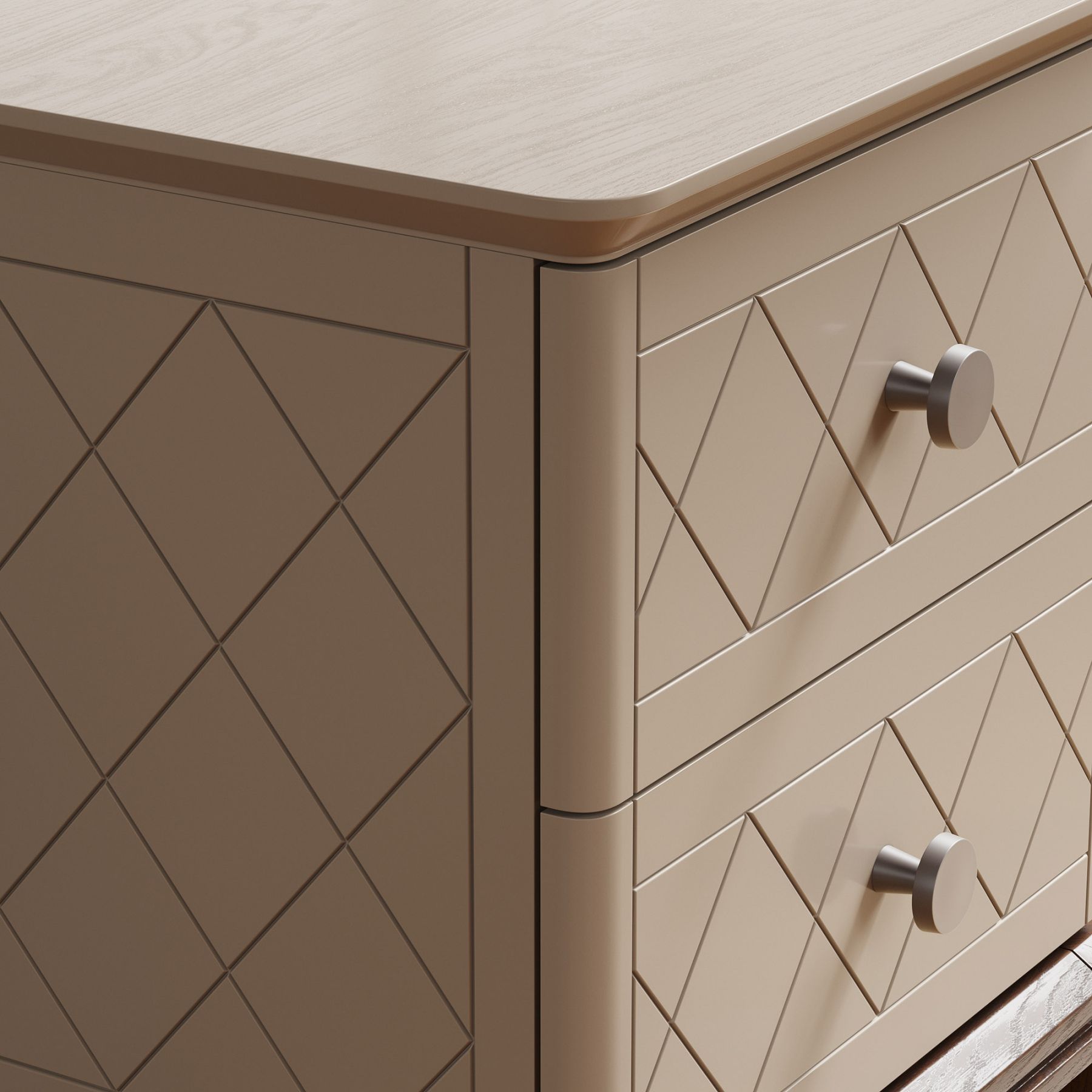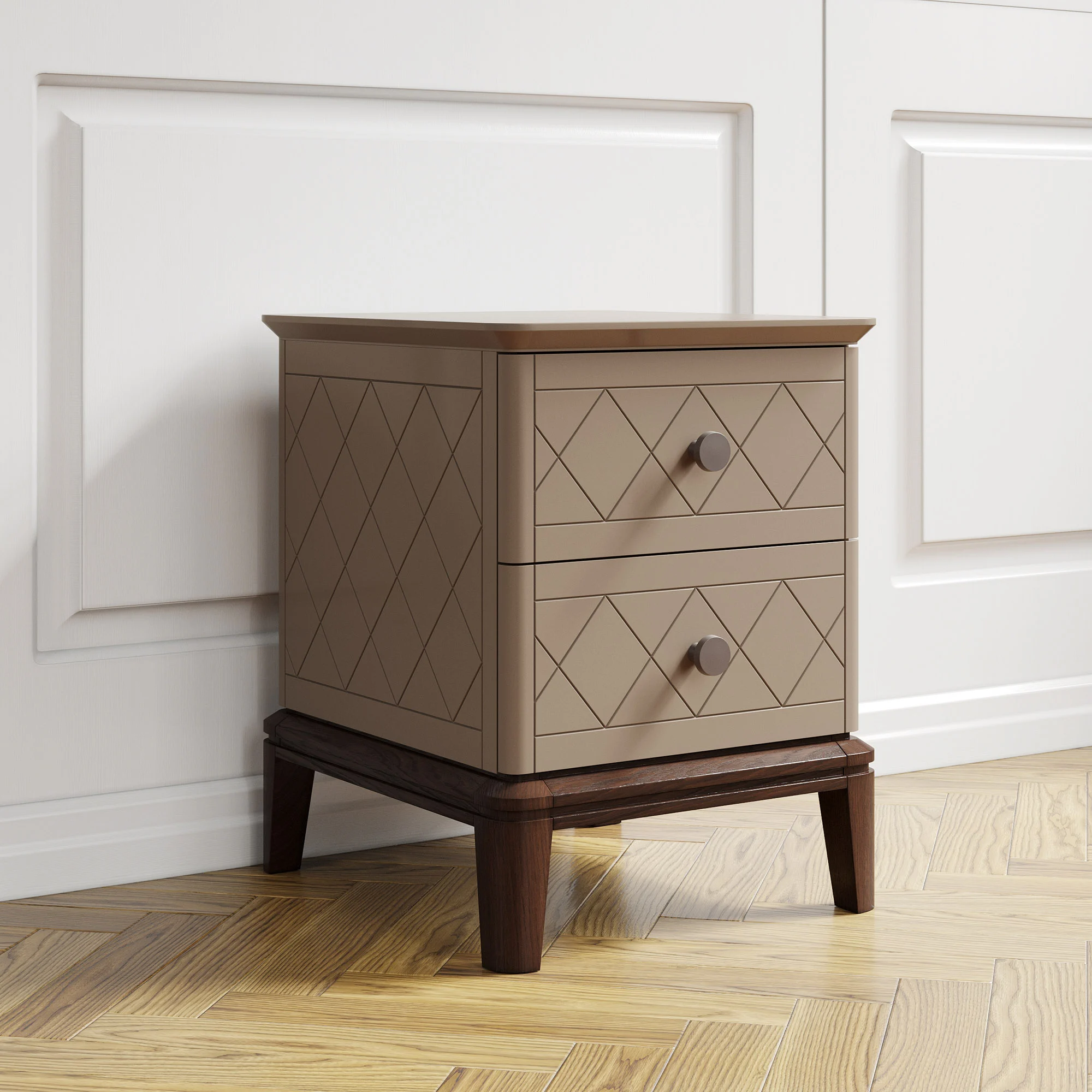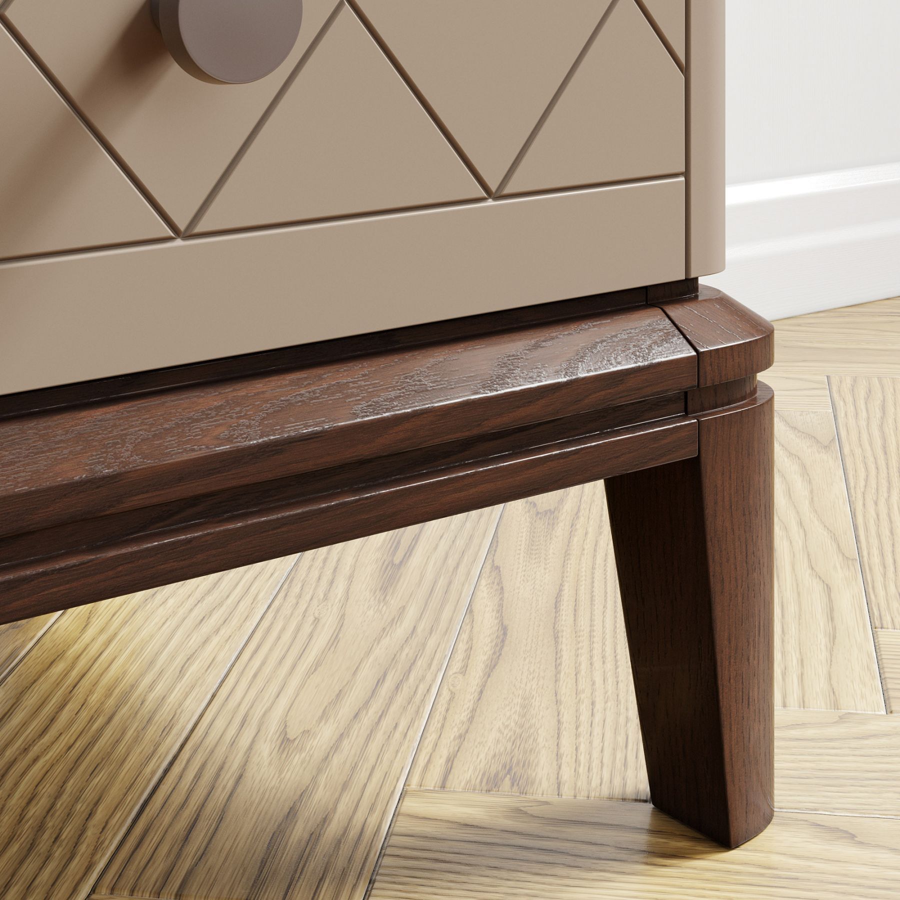 Тумба оснащена двумя ящиками для хранения, которые украшают массивные ручки в стильной отделке. Ножки из массива дуба обрабатываются вручную: их многогранные очертания результат кропотливой работы наших специалистов.