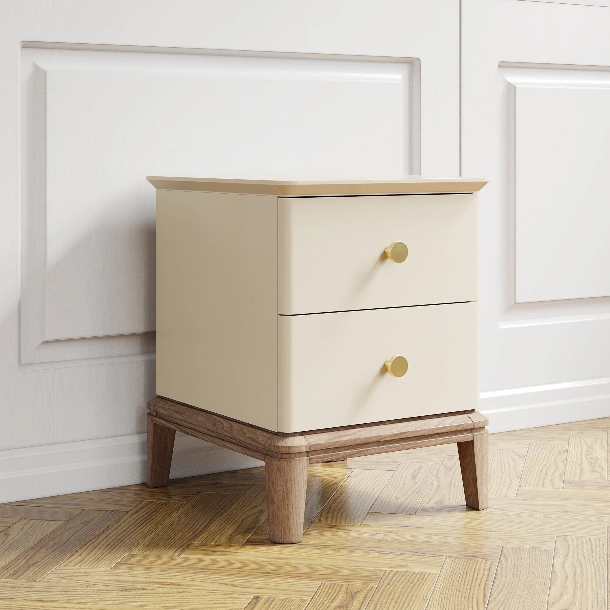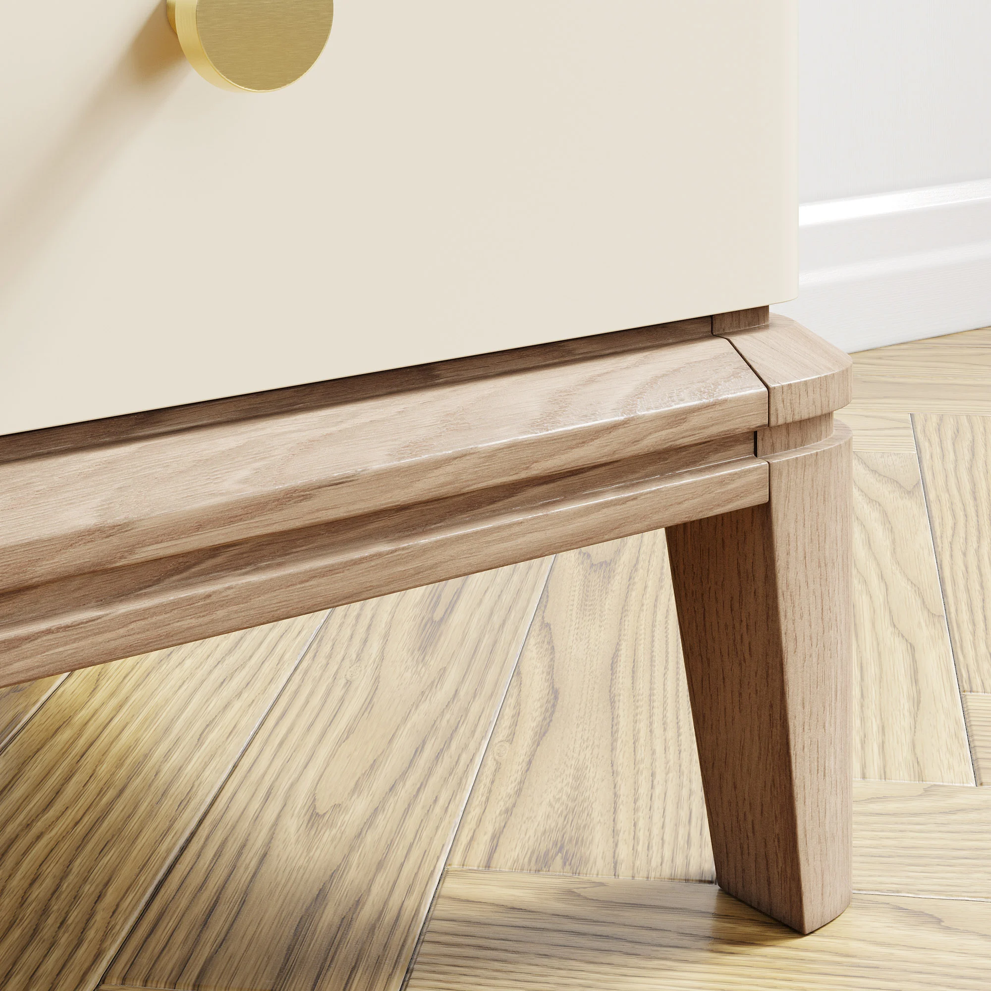 Тумба оснащена двумя ящиками для хранения, которые украшают массивные ручки в стильной отделке. Ножки из массива дуба обрабатываются вручную: их многогранные очертания — результат кропотливой работы наших специалистов.
